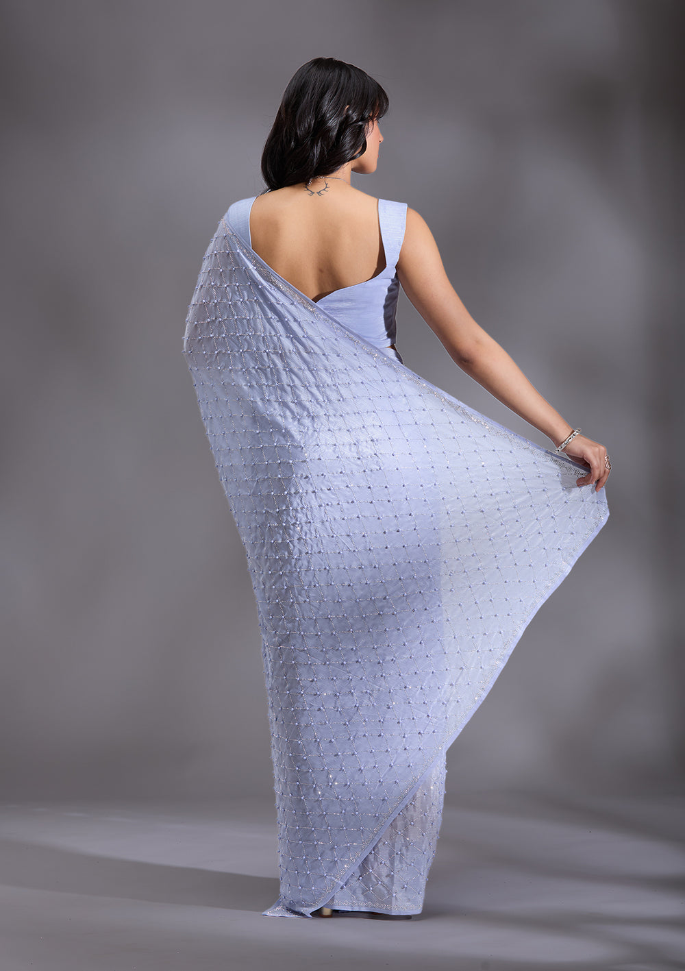 - Blue chiffon sarees are versatile and stylish. Blue transitions seamlessly from day to night so you can go from attending office meetings to heading to a colleague's party without much effort.