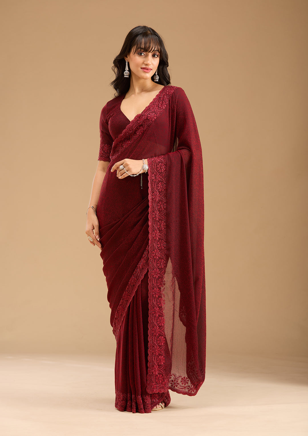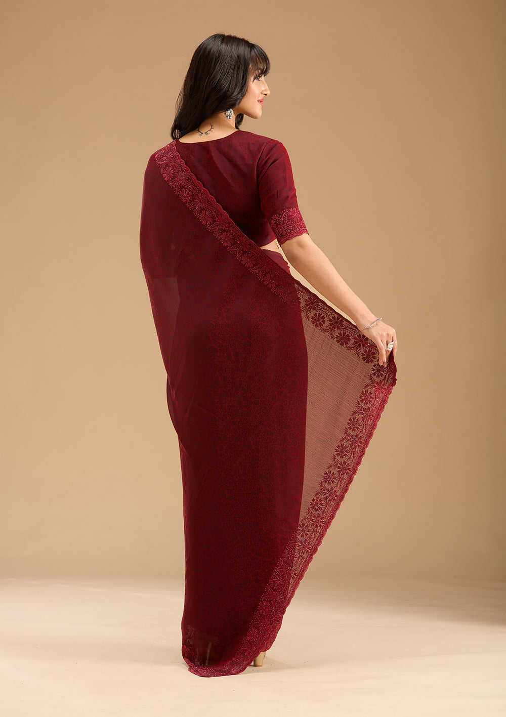 | Wine Zariwork (Silver) Chiffon Saree | ₹ 2,392 | |
