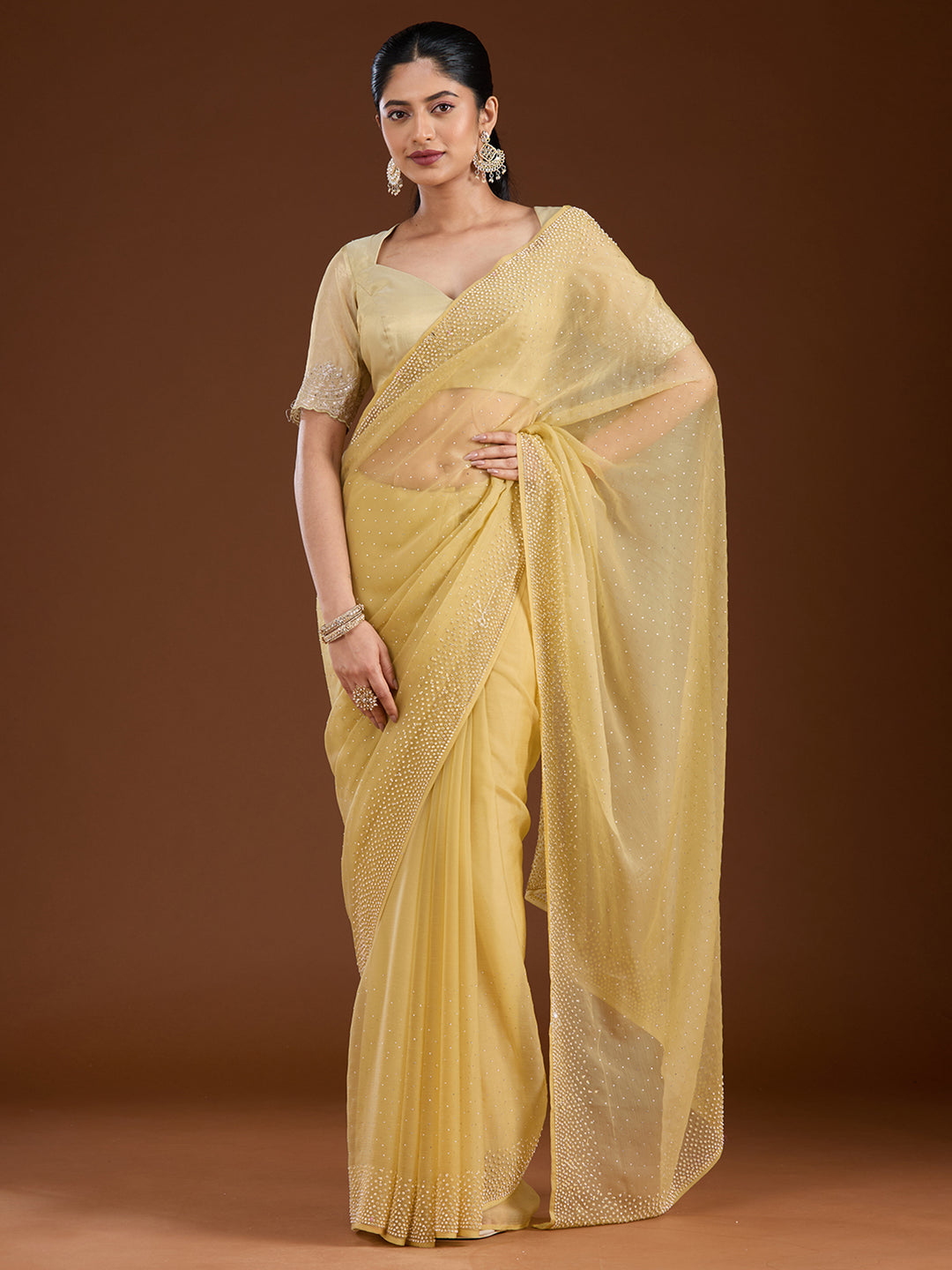 | Mustard Stonework Chiffon Saree | ₹ 2,392 | |