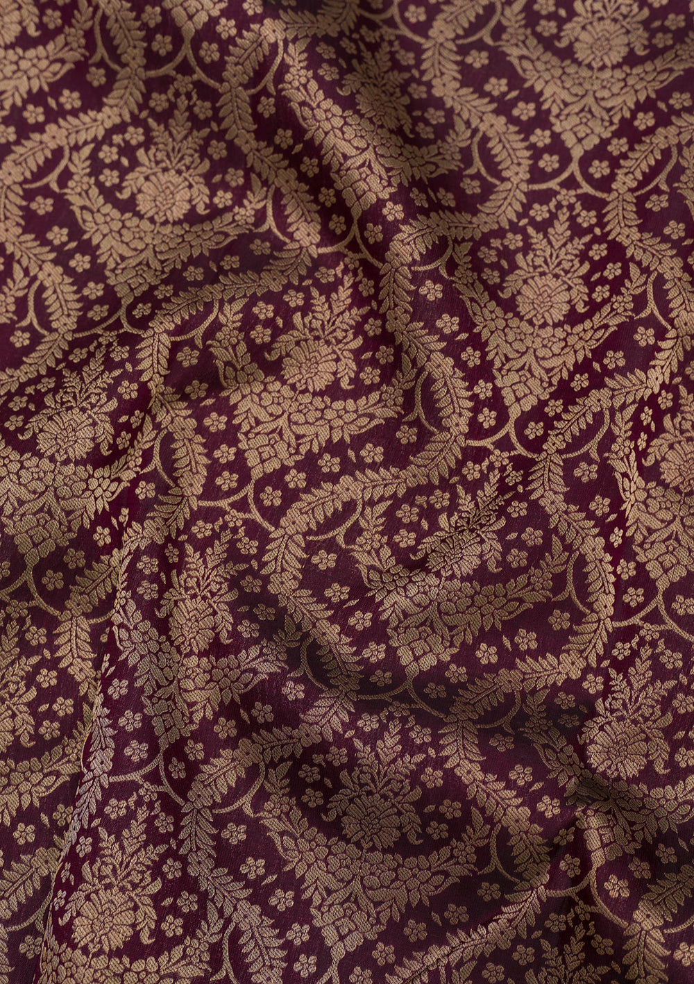 Brown Saree in Pure Silk fabric. The Saree is elevated with Zariwork embroidery. It comes with an Unstitched blouse. Comes with the Indian Silk Mark certification.