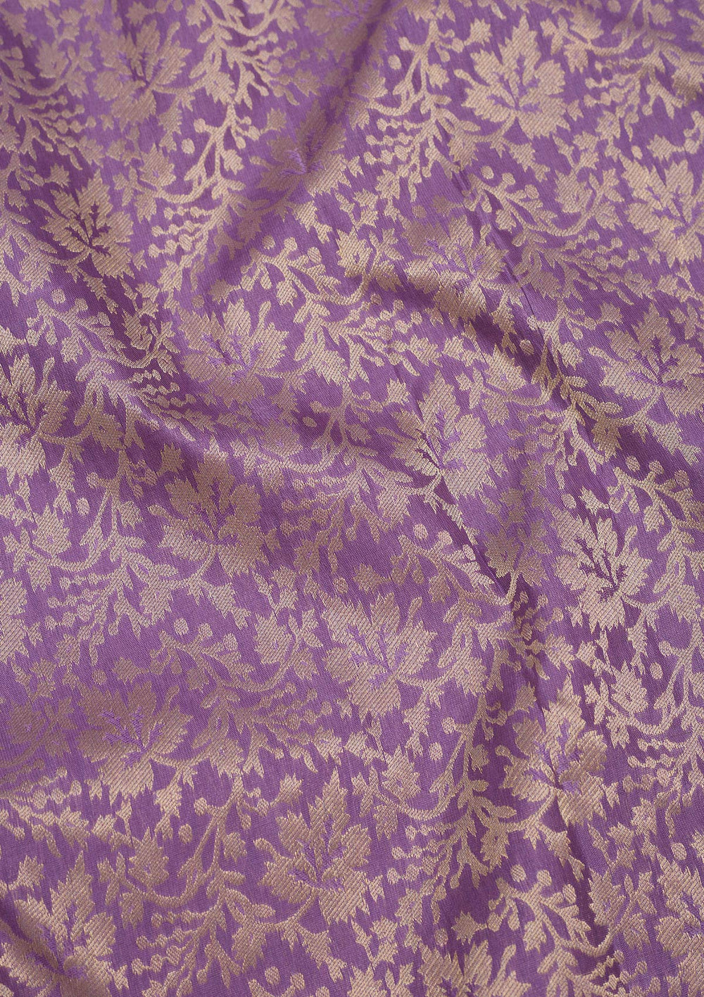 Lavender Saree in Pure Silk fabric. The Saree is elevated with Zariwork embroidery. It comes with an Unstitched blouse. Comes with the Indian Silk Mark certification.