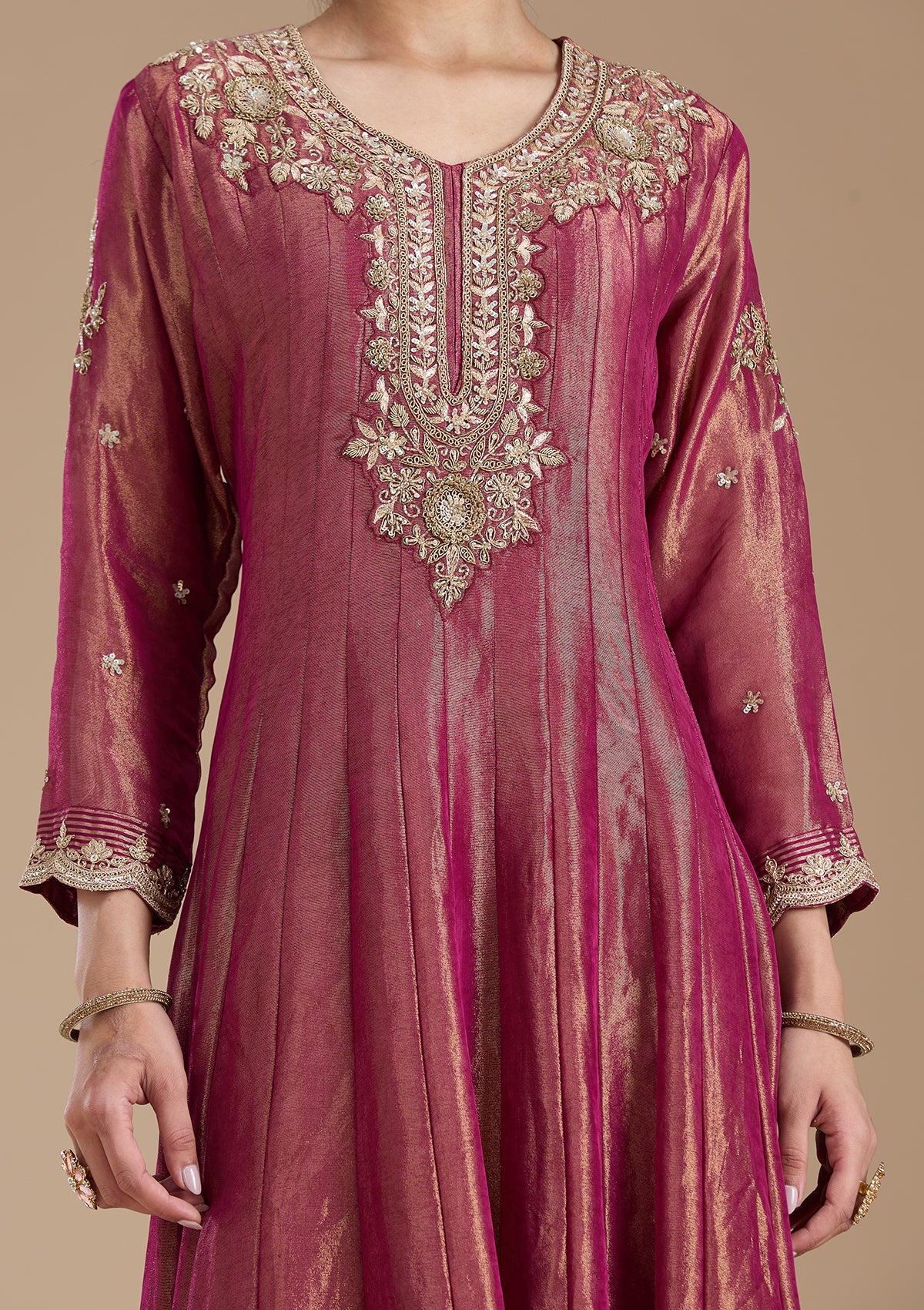 Onion Pink Zariwork Tissue Readymade Salwar Suit