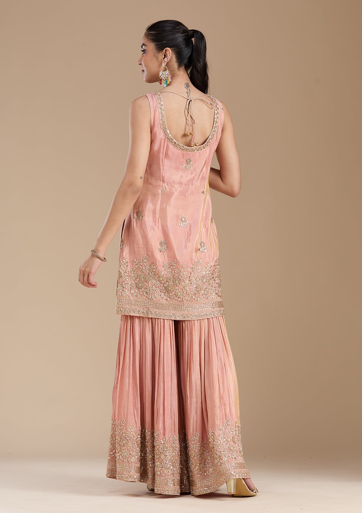 Peach Salwar Suit in Tissue fabric. The Salwar Suit is embellished with Sequins embroidery. Accompanied with a bottom and dupatta. Comes with the Koskii promise of premium quality.