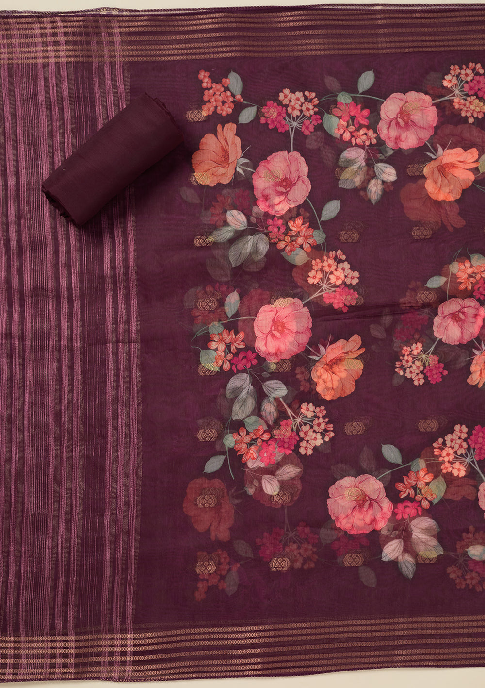 Wine Zariwork (Gold) Dola Silk Unstitched Salwar Suit