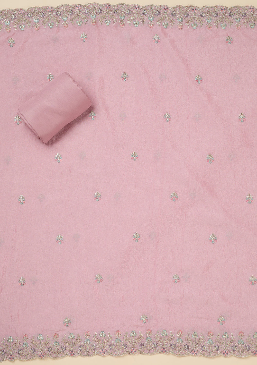 | Onion Pink Gold Zariwork Chinon Saree | ₹ 4,392 | |