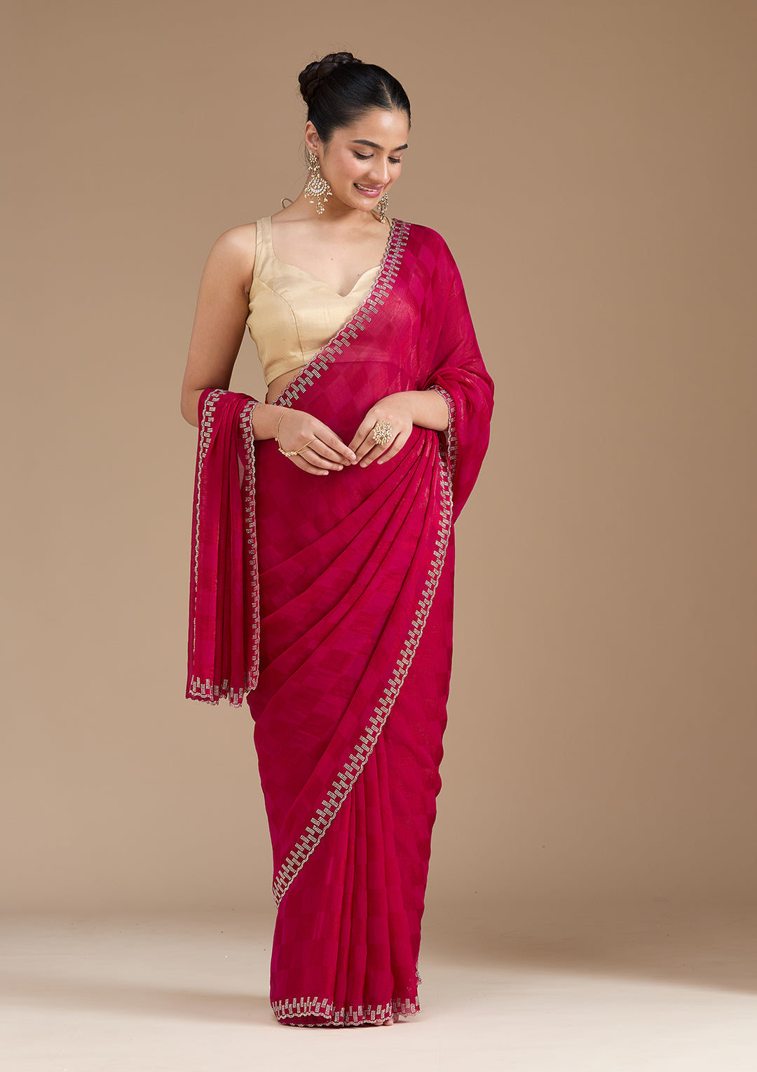| Onion Pink Mirrorwork Tissue Saree | ₹ 5,192 | |
