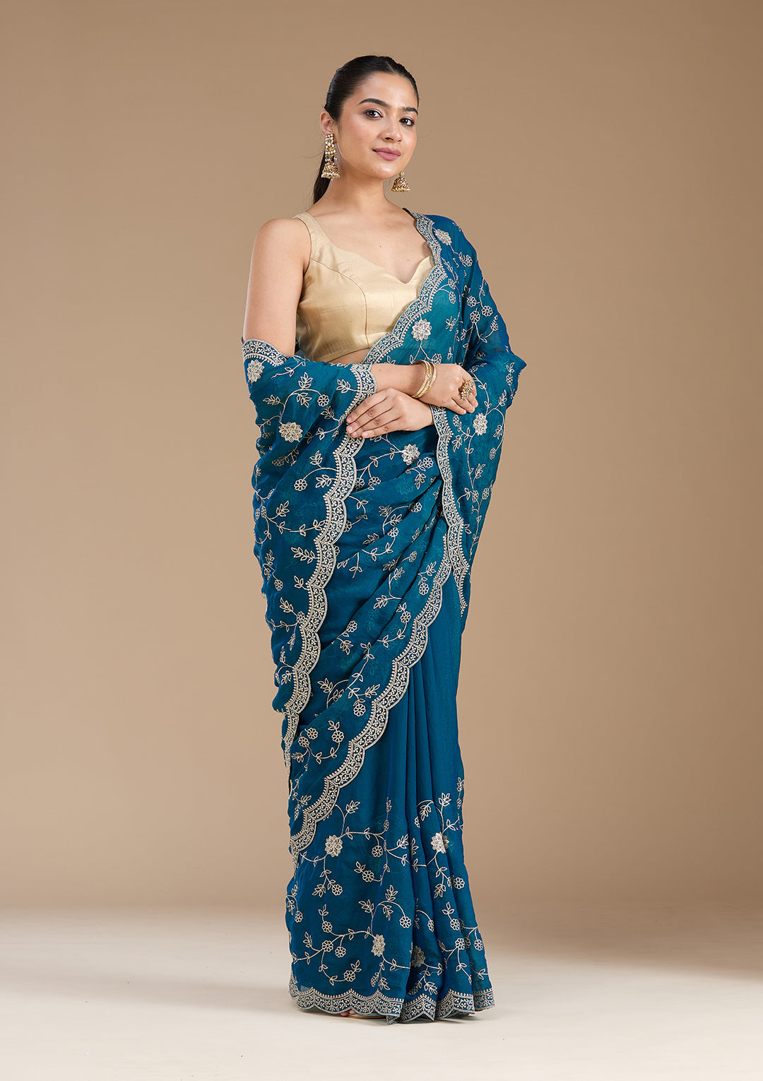 | Peacock Blue Zariwork (Gold) Georgette Saree | ₹ 3,192 | |