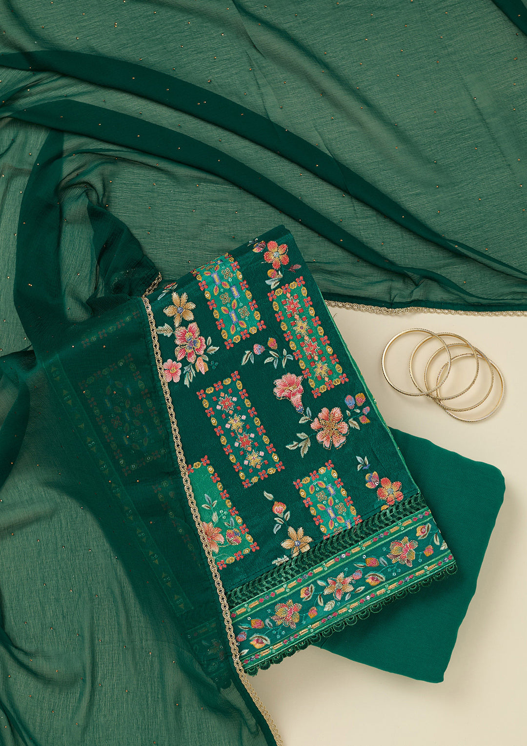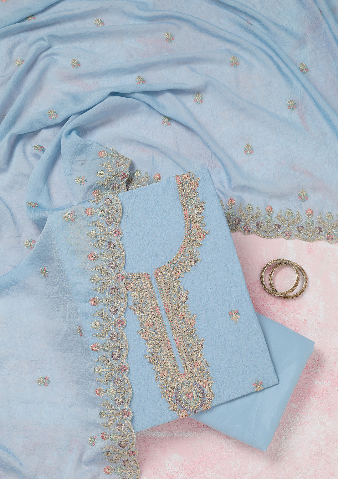 | Pink Printed Organza Unstitched Salwar Suit | ₹ 2,392 | |