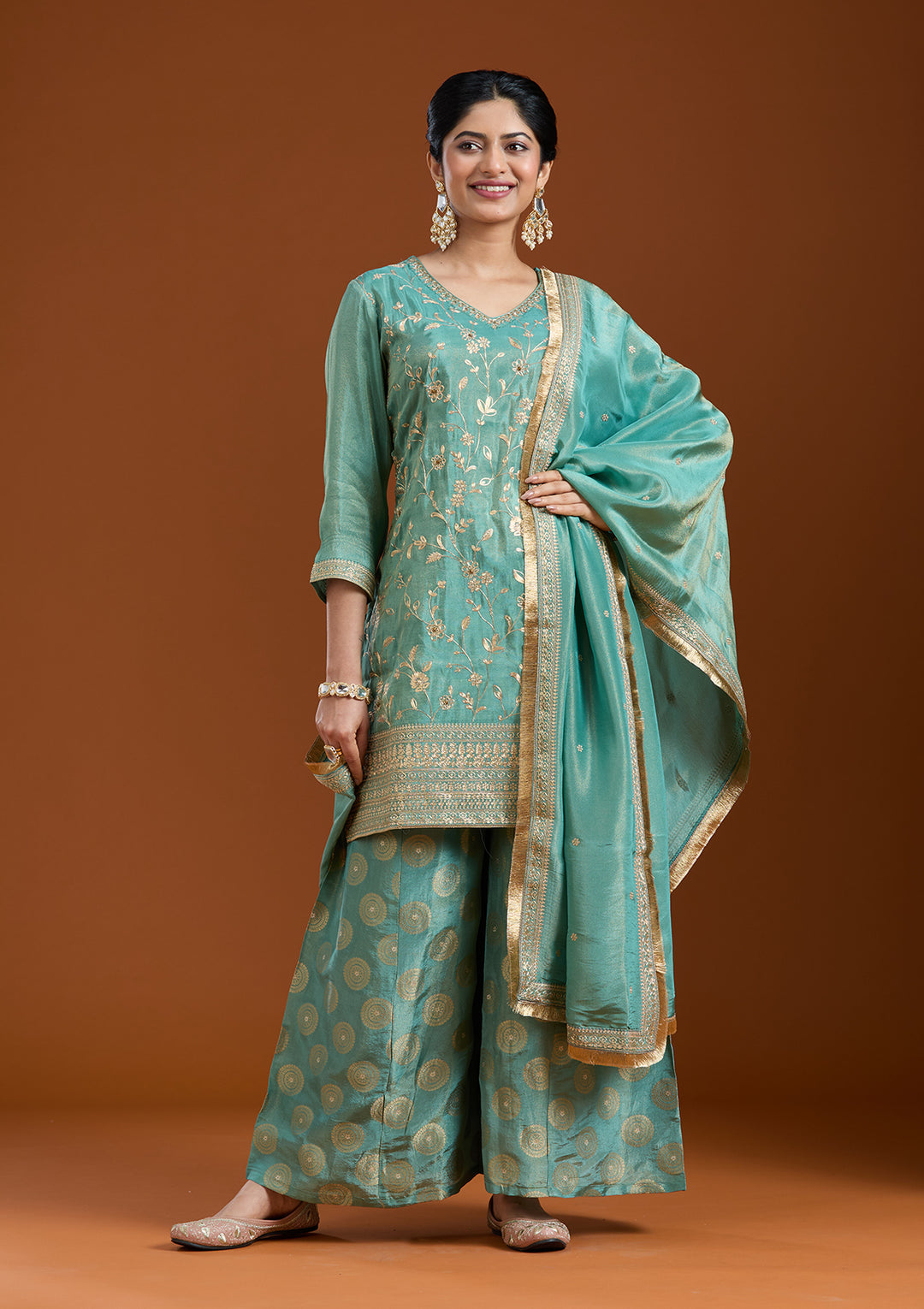 | Teal Green Gotapatti Organza Saree | ₹ 4,392 | |