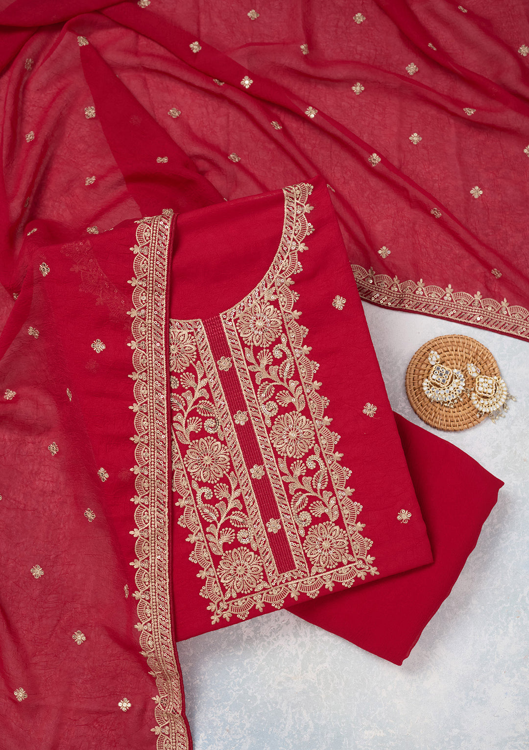 | Onion Pink Zariwork Cotton Unstitched Salwar Suit | ₹ 3,192 | |