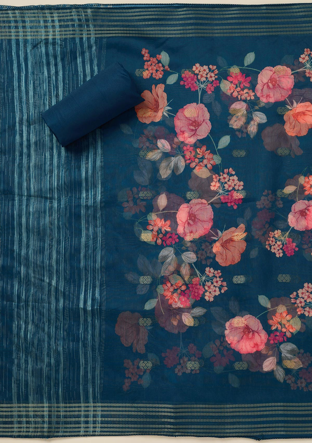 | Peacock Blue Zariwork (Gold) Dola Silk Unstitched Salwar Suit | ₹ 1,992 | |