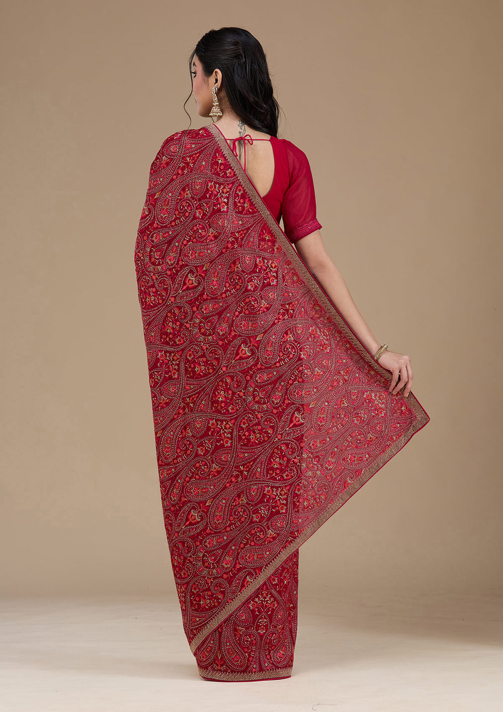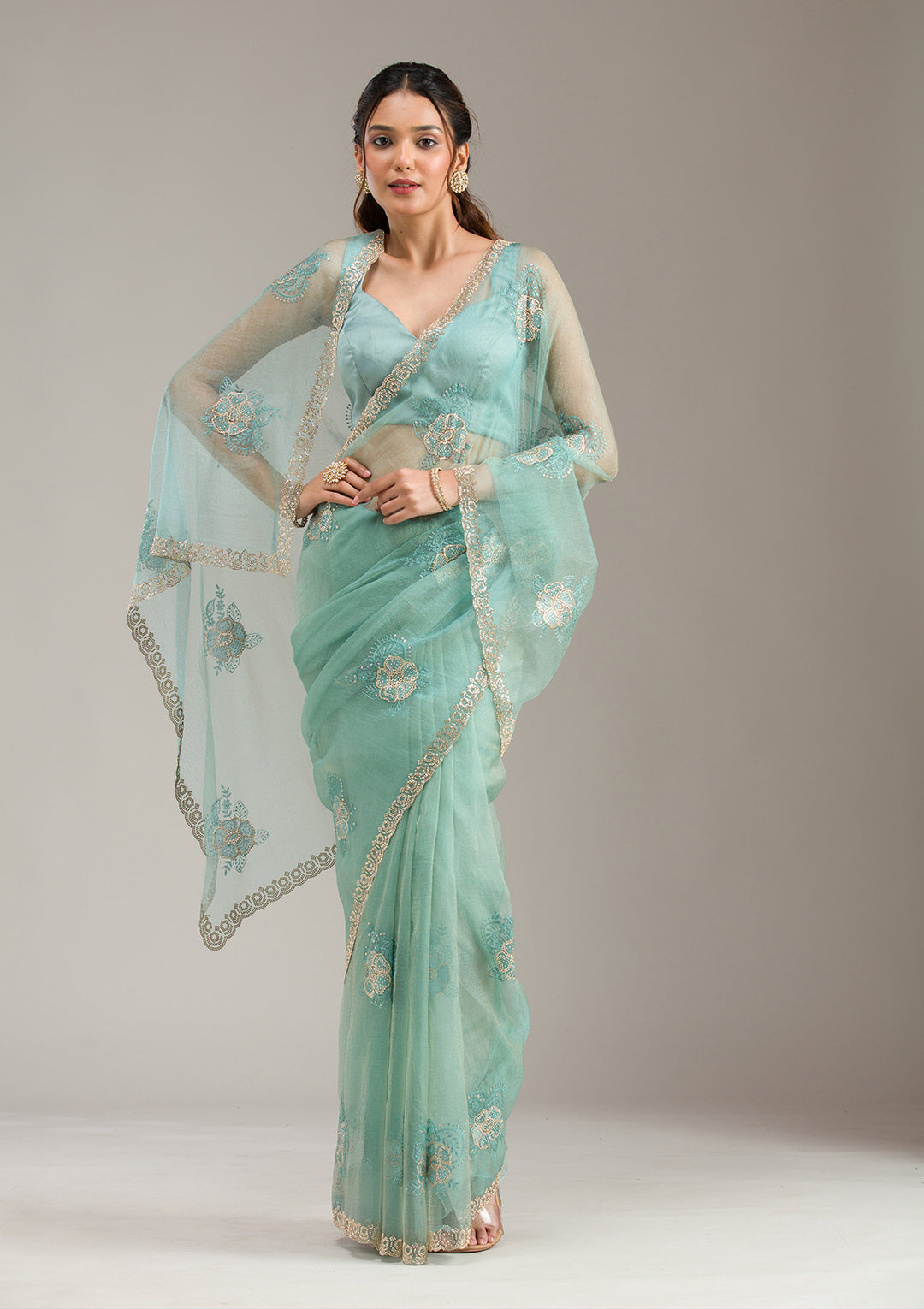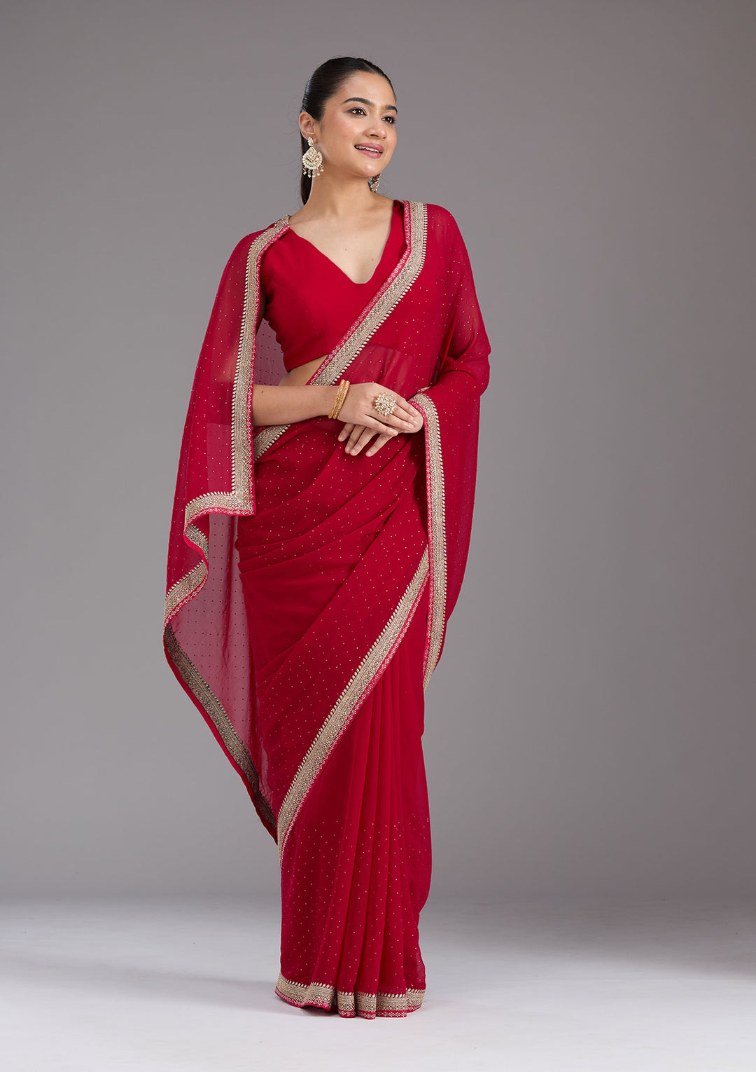 | Pink Stonework (Gold) Organza Saree | ₹ 5,592 | |