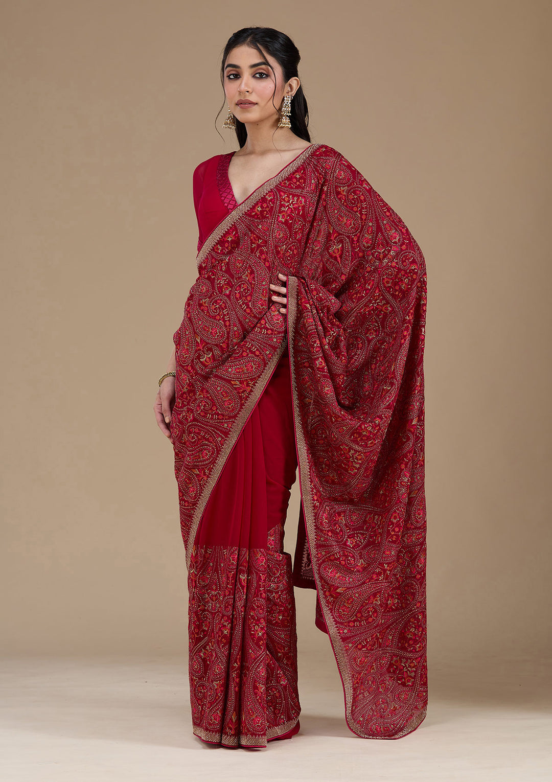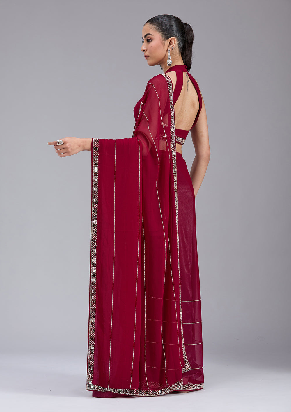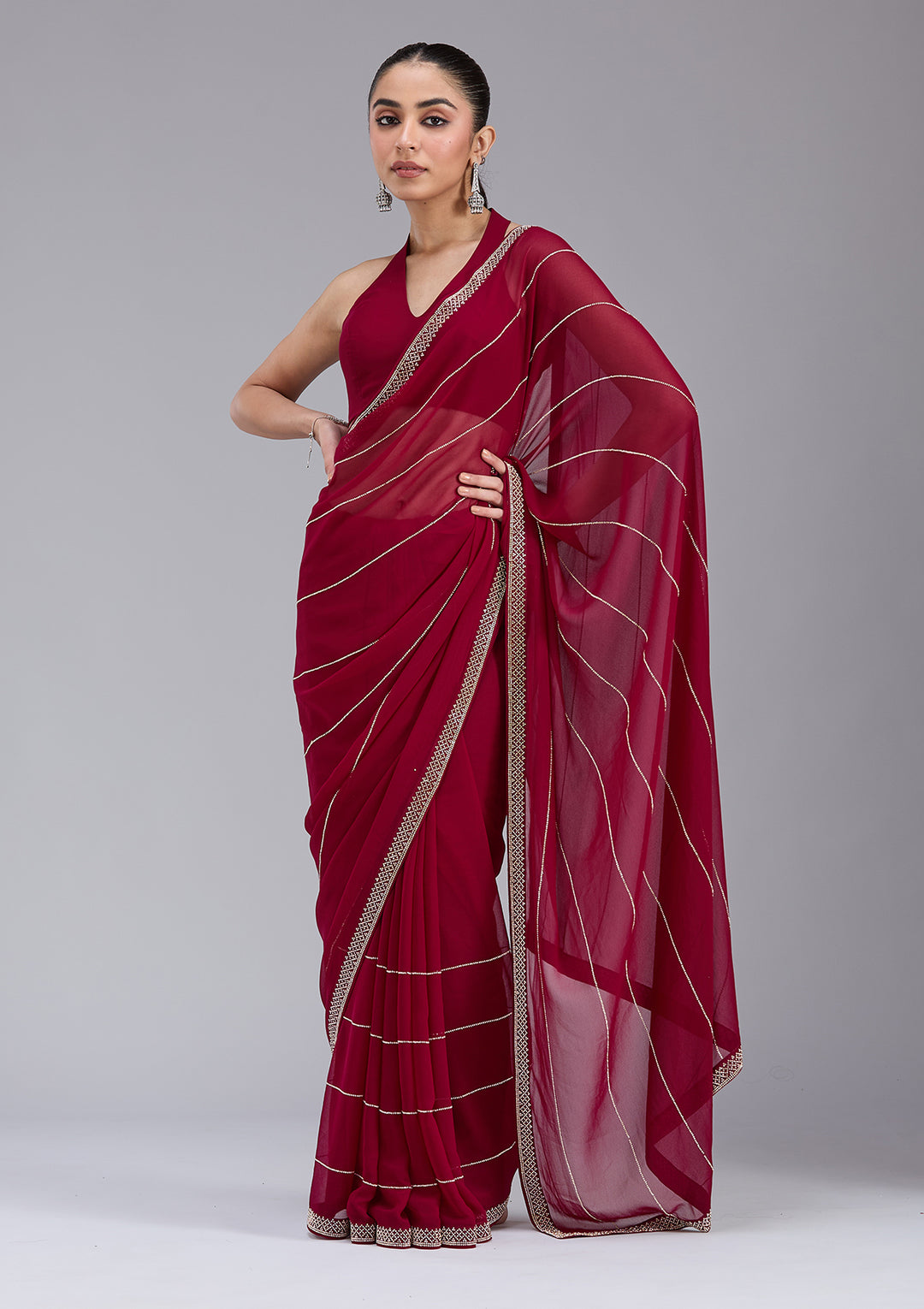 | Wine Zariwork (Gold) Georgette Saree | ₹ 3,192 | |
