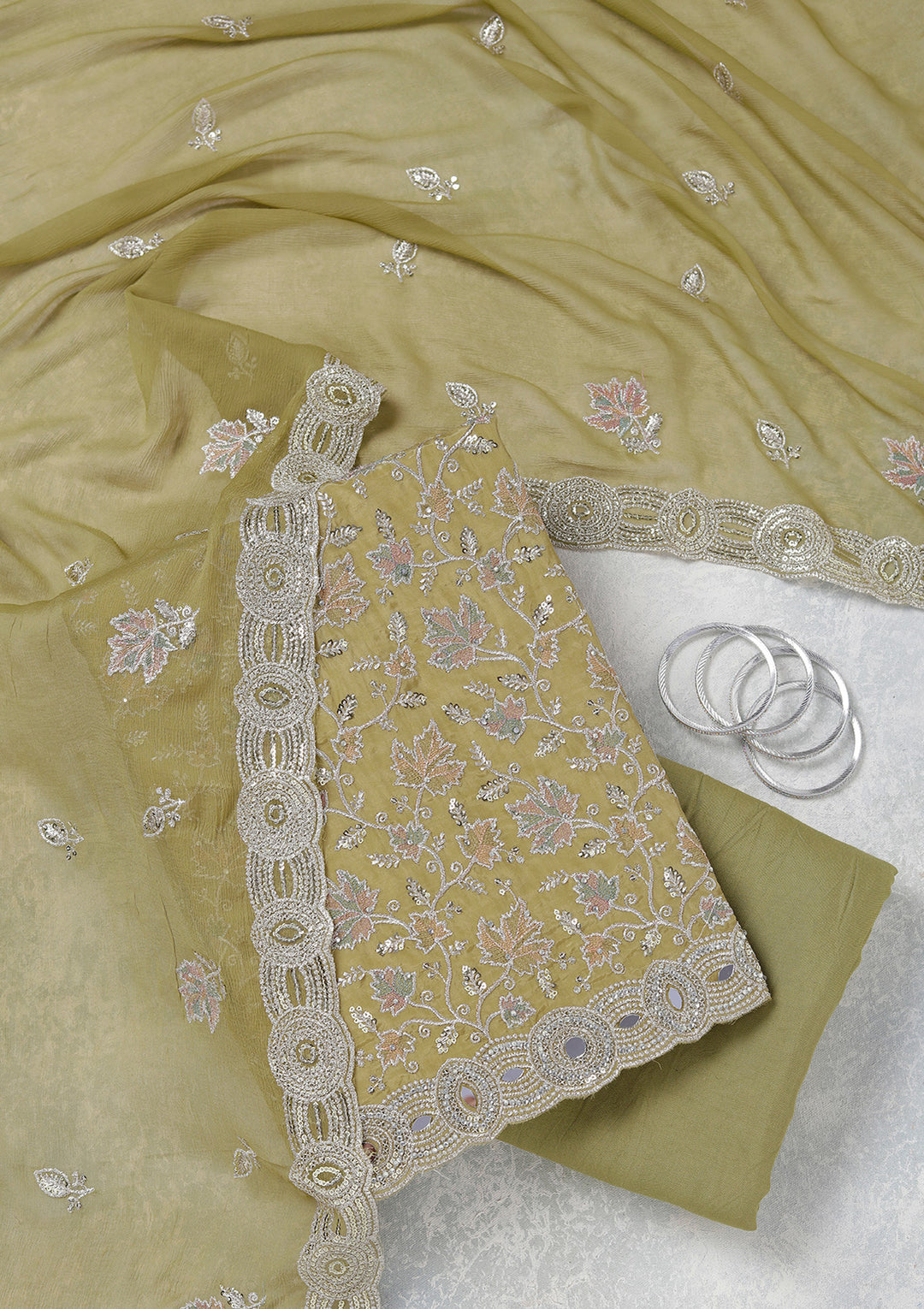 | Mehandi Green Threadwork Georgette Unstitched Salwar Suit | ₹ 3,192 | |