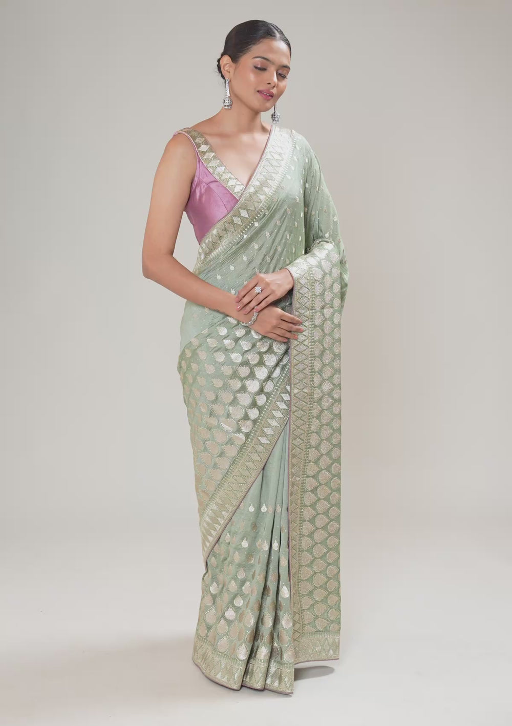 | Dark Lavender Stonework (Gold) Tissue Saree | ₹ 5,592 | |