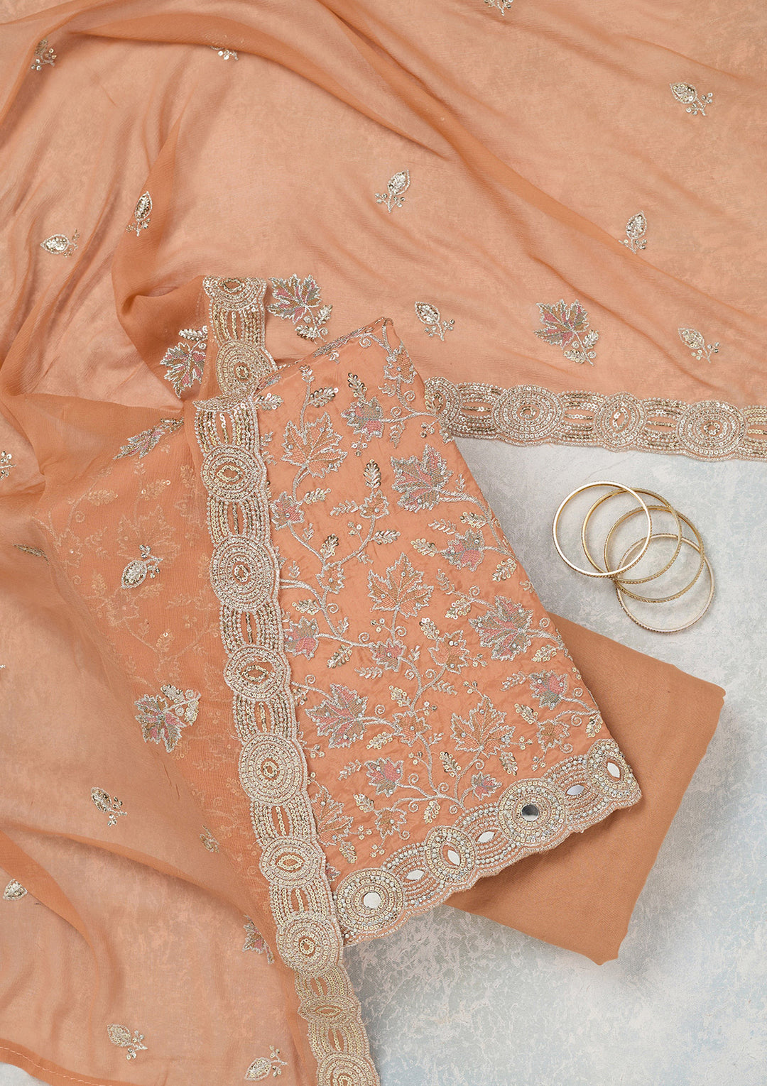 | Wine Zariwork (Gold) Chinon Unstitched Salwar Suit | ₹ 2,792 | |