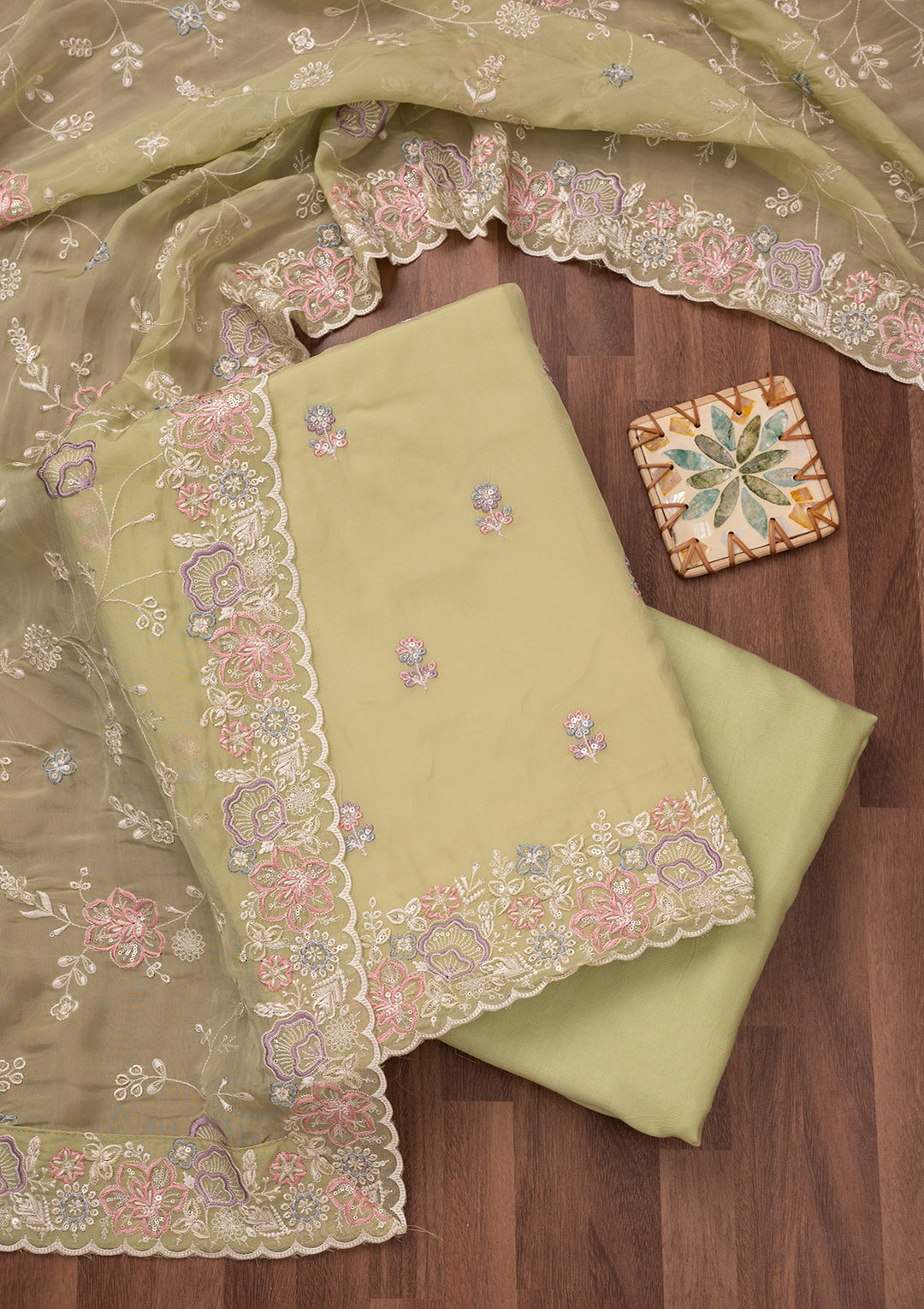 | Mehendi Threadwork Tissue Saree | ₹ 5,994 | |