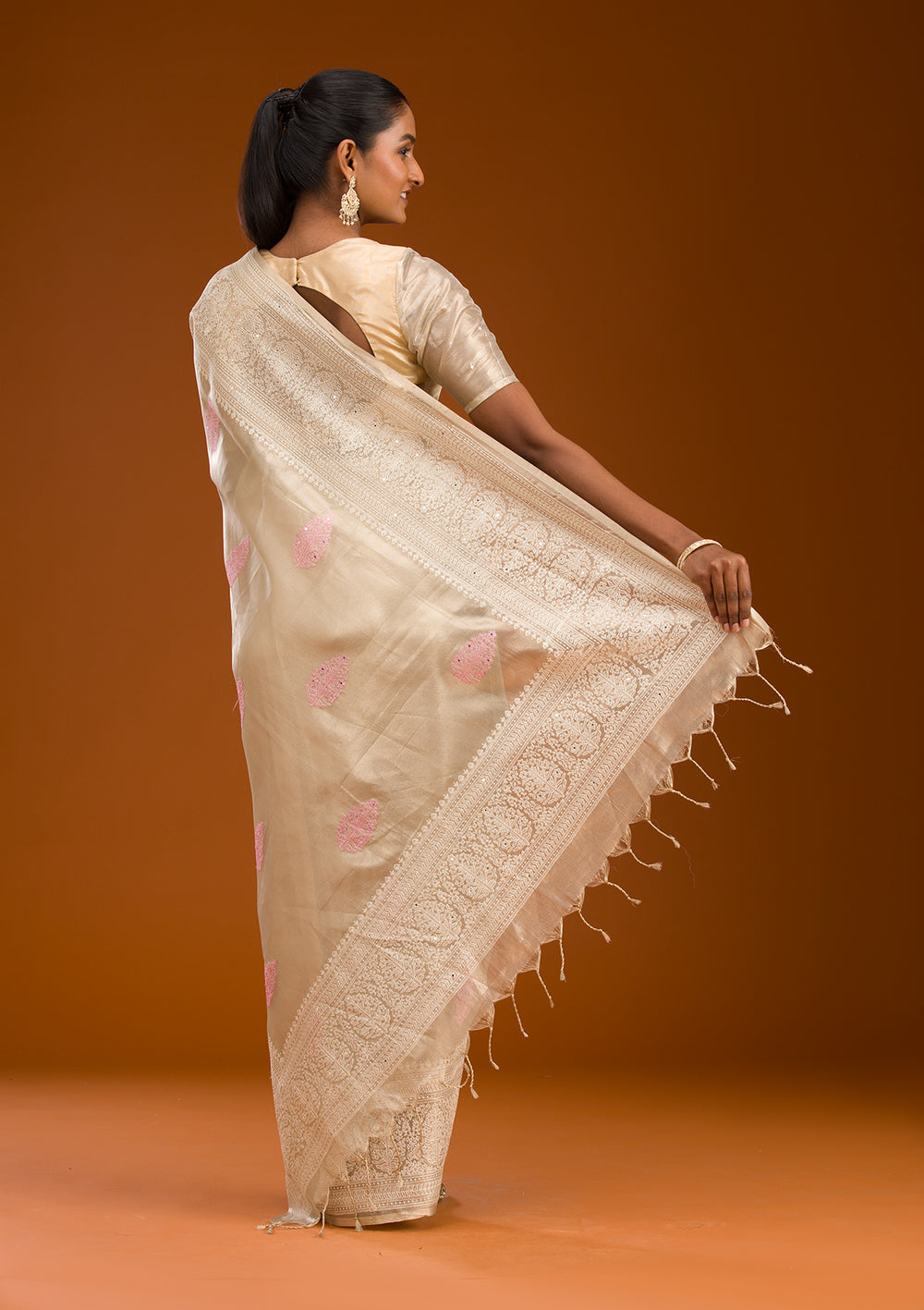 | Baby Pink Threadwork Tissue Saree | ₹ 5,694 | |