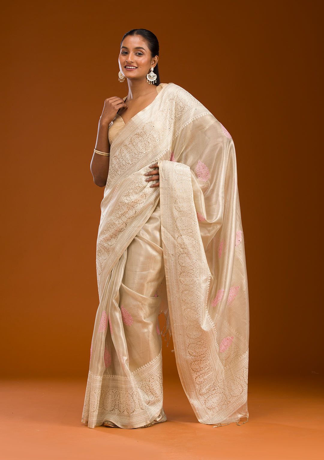 | Onion Pink Zariwork Pure Silk Saree | ₹ 13,993 | |