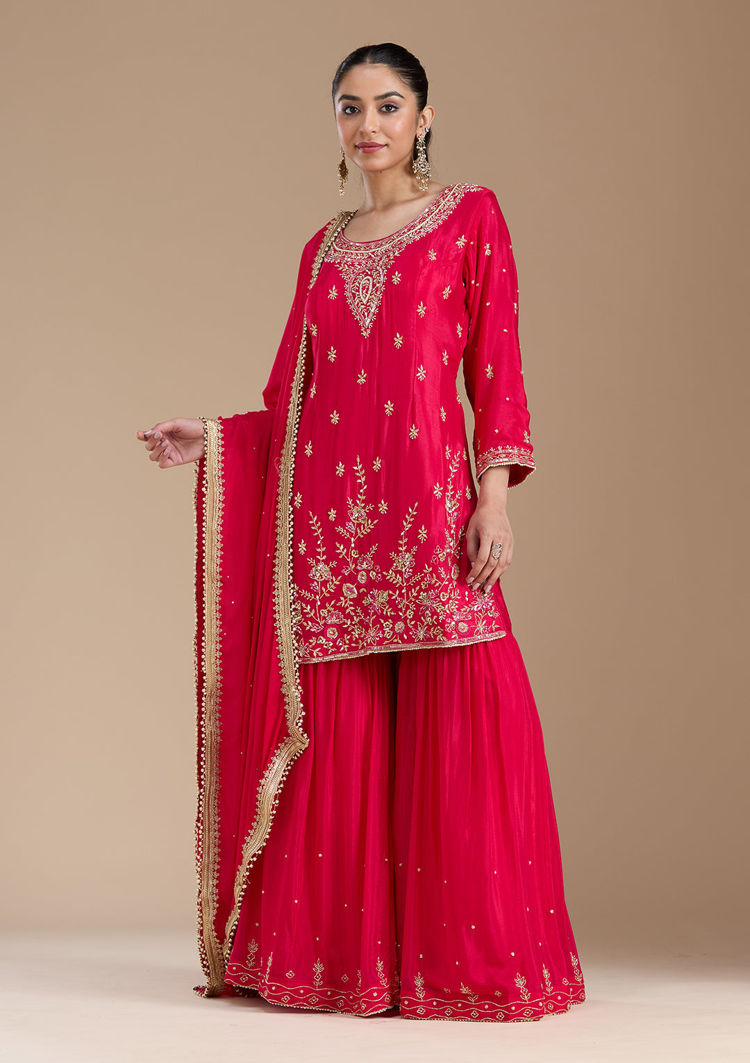 Rani Pink Threadwork Satin Readymade Salwar Suit | ₹ 20,990 |