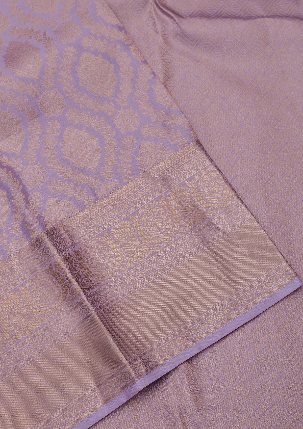 Lavender Silk Saree in Pure Silk fabric. The Silk Saree is elevated with Zariwork embroidery. It comes with an Unstitched blouse. Comes with the Koskii promise of premium quality.