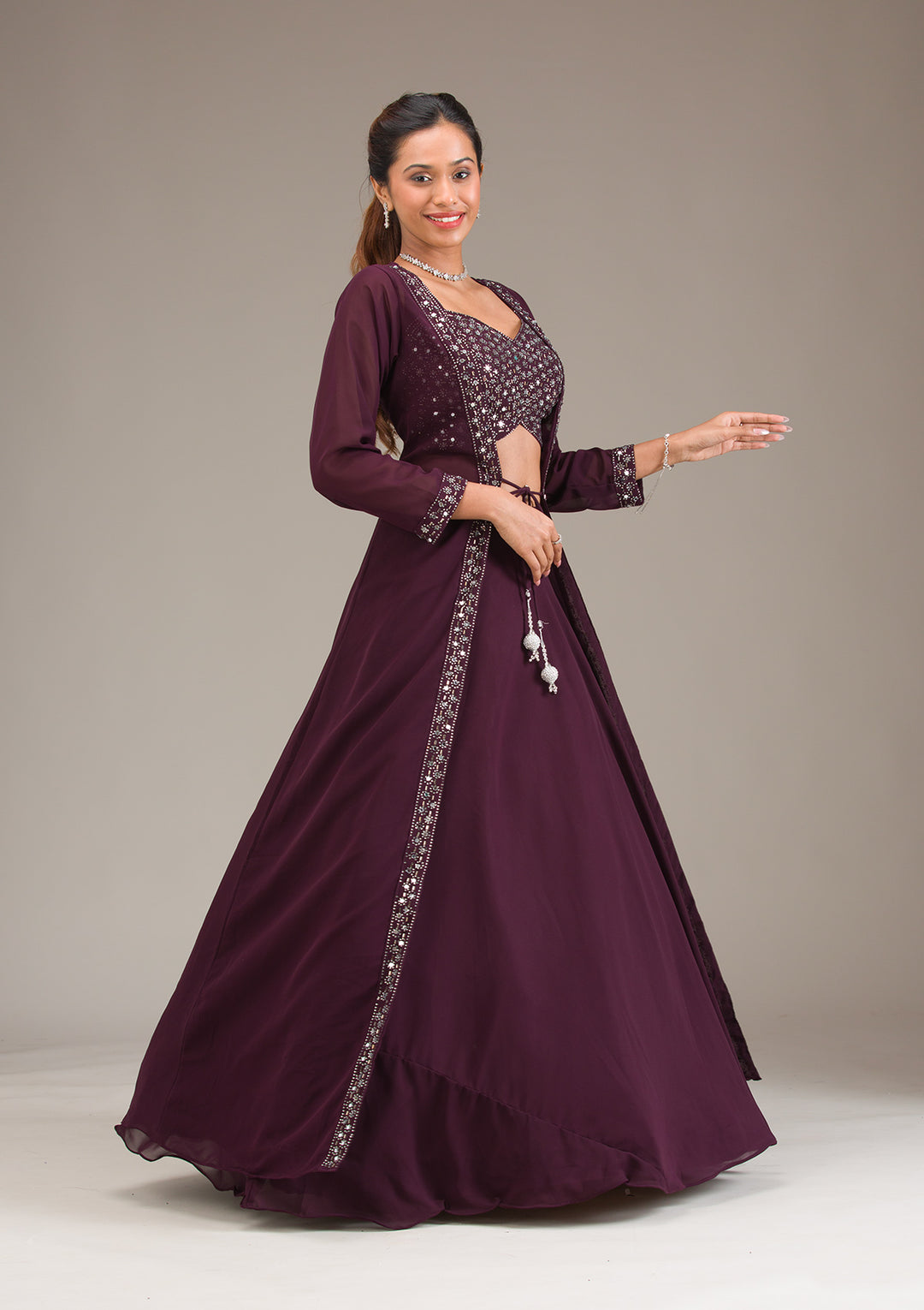 | Purple Sequins Satin Readymade Lehenga | ₹ 7,990 | |