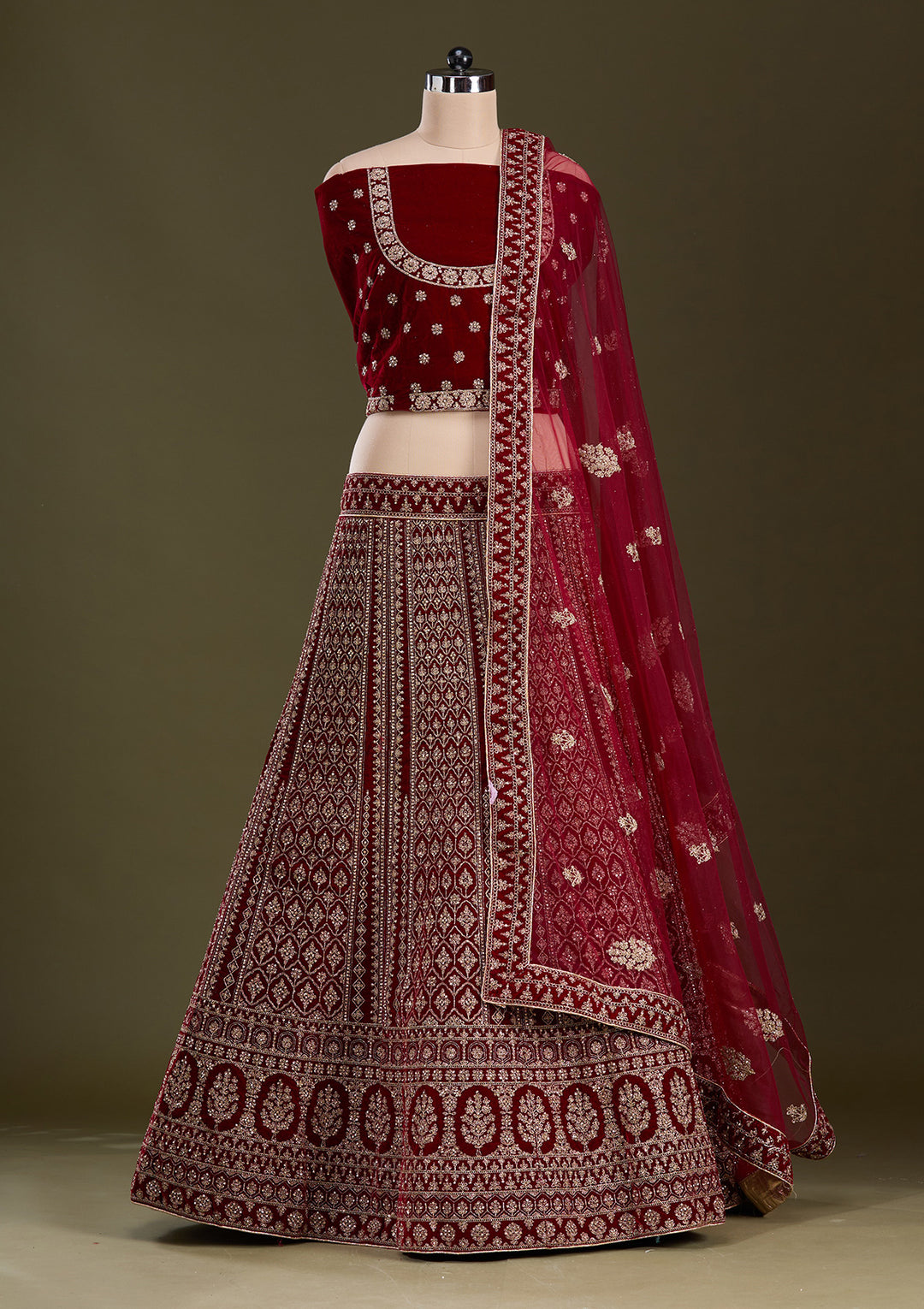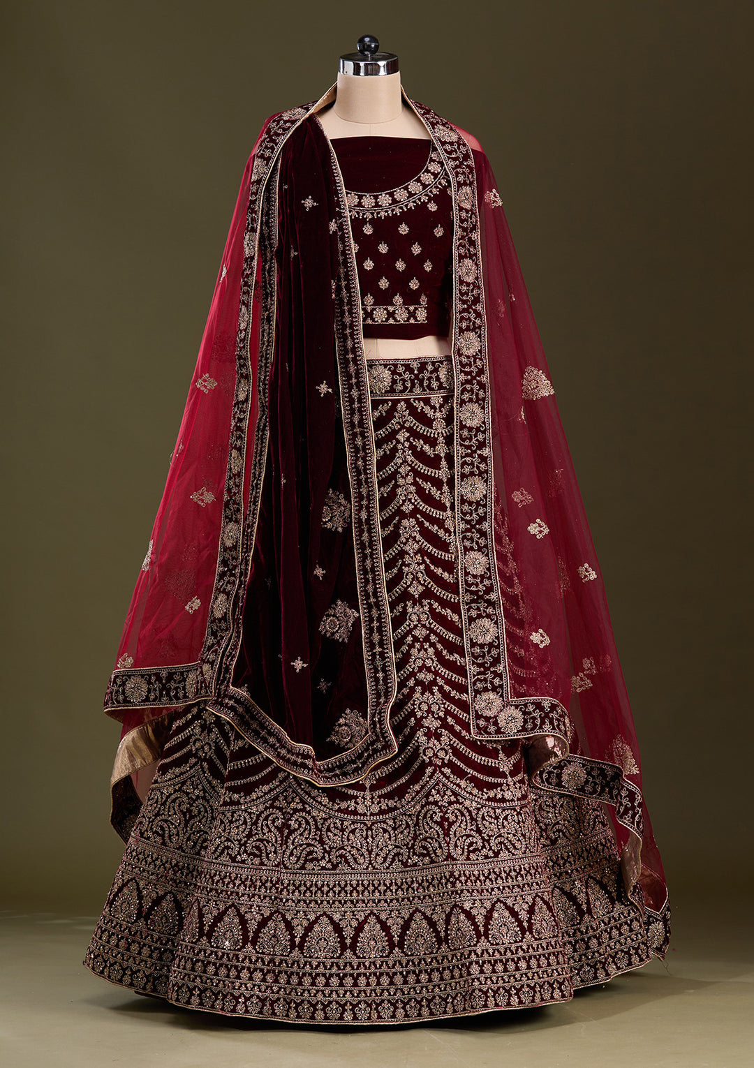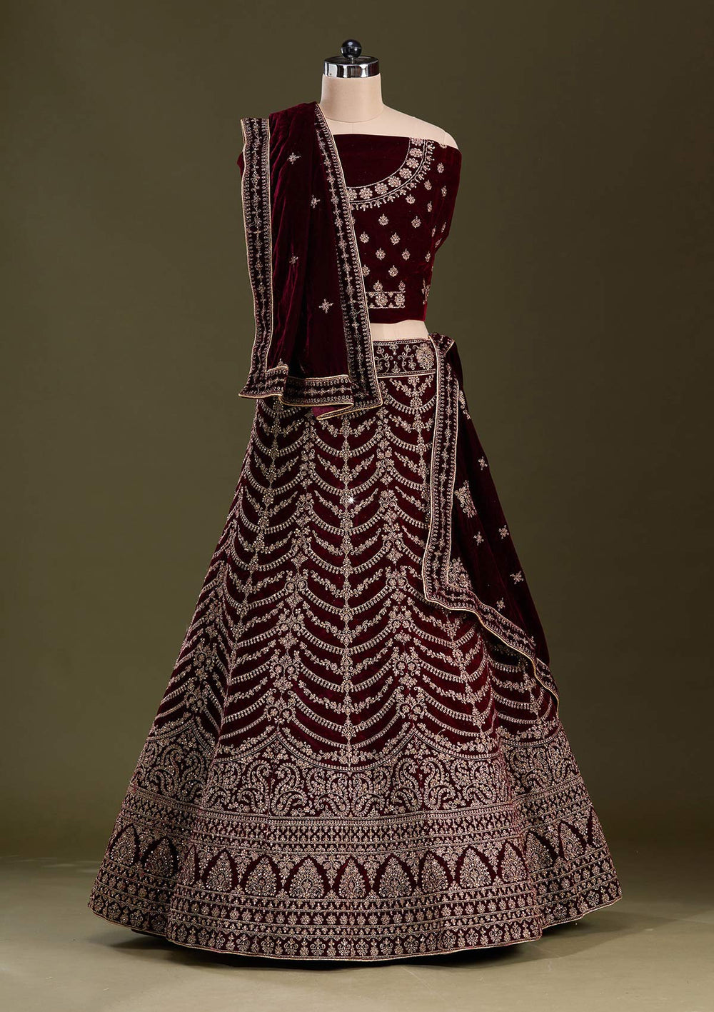 | Dark Maroon Cording Velvet Semi-Stitched Lehenga | ₹ 12,495 | |