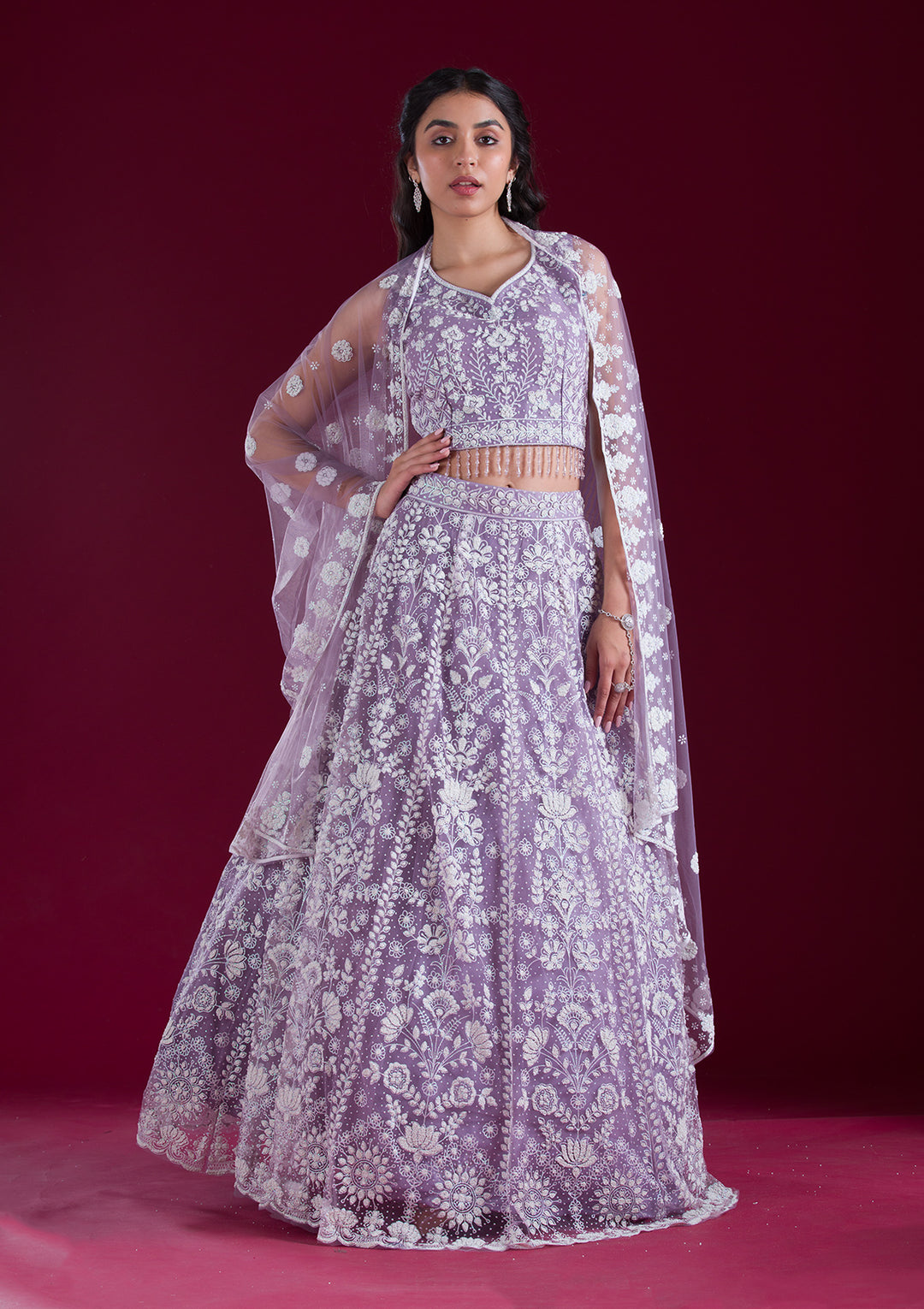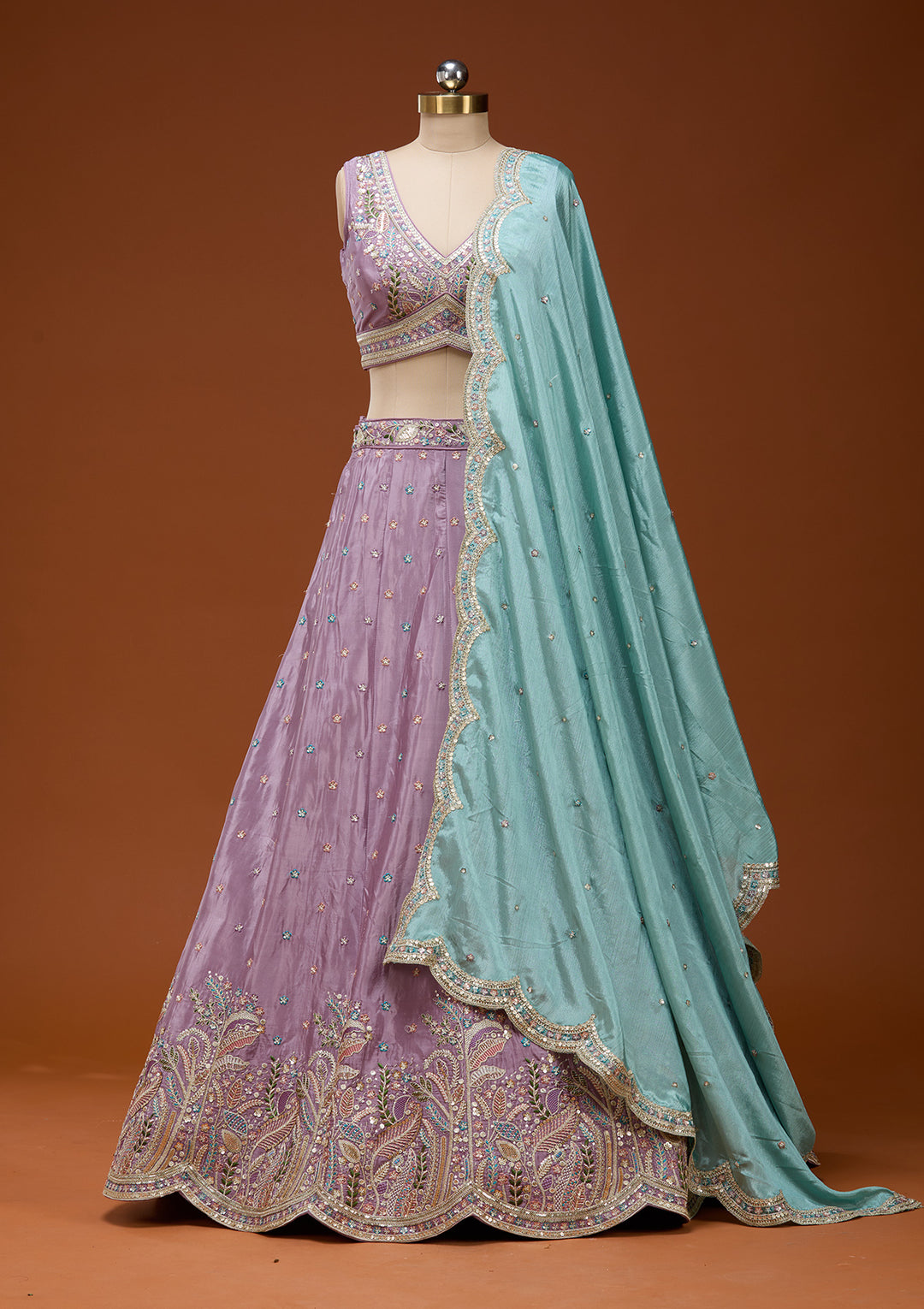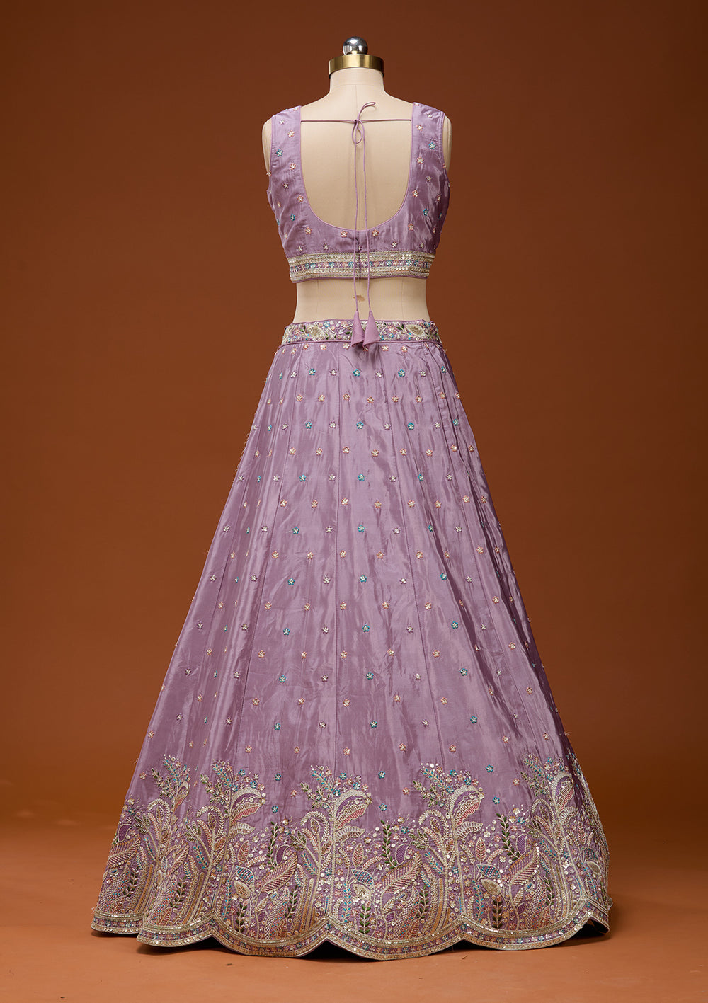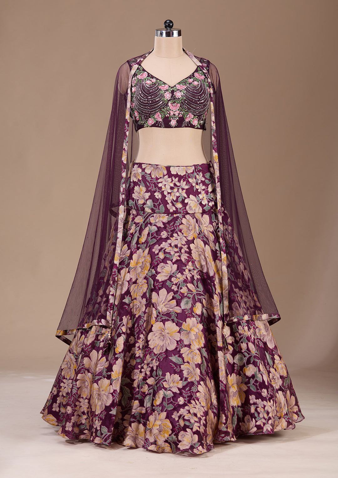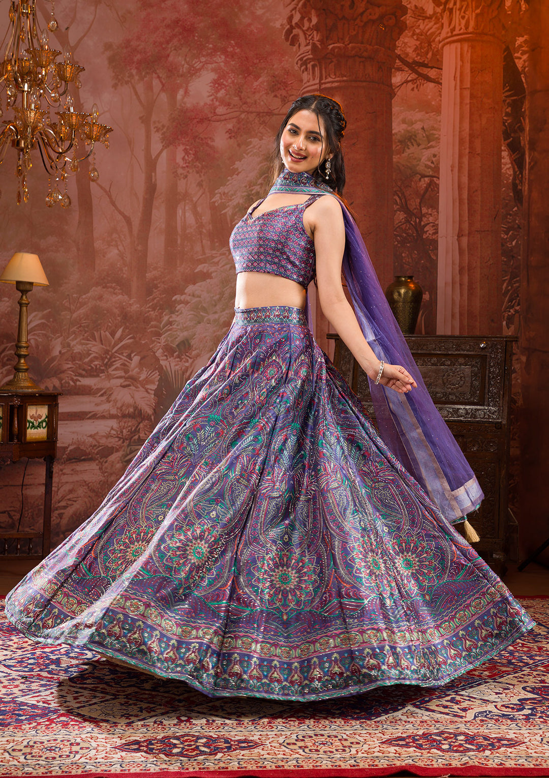 | Purple Printed Semi Crepe Readymade Lehenga | ₹ 8,990 | |