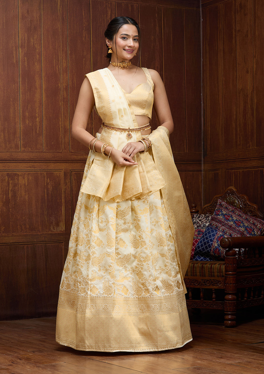 | Mustard Silver Zariwork Banarasi Readymade Lehenga | ₹ 8,990 | |