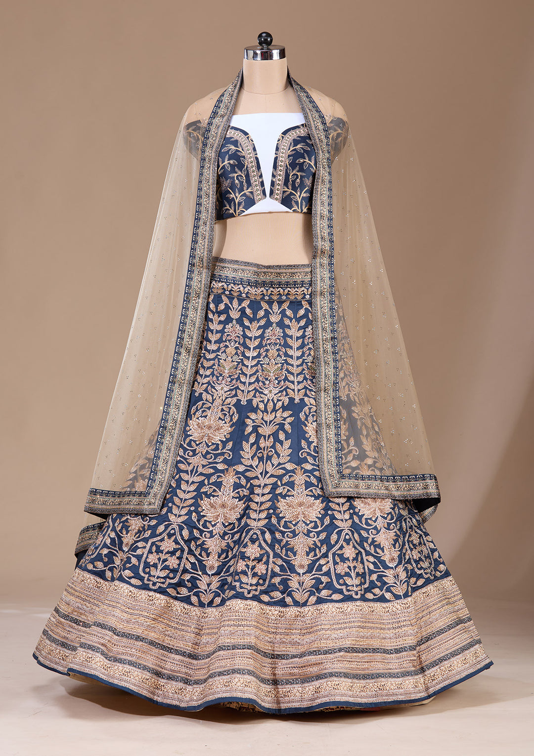 | Navy Blue Swaroski Banarasi Readymade Lehenga | ₹ 8,990 | |
