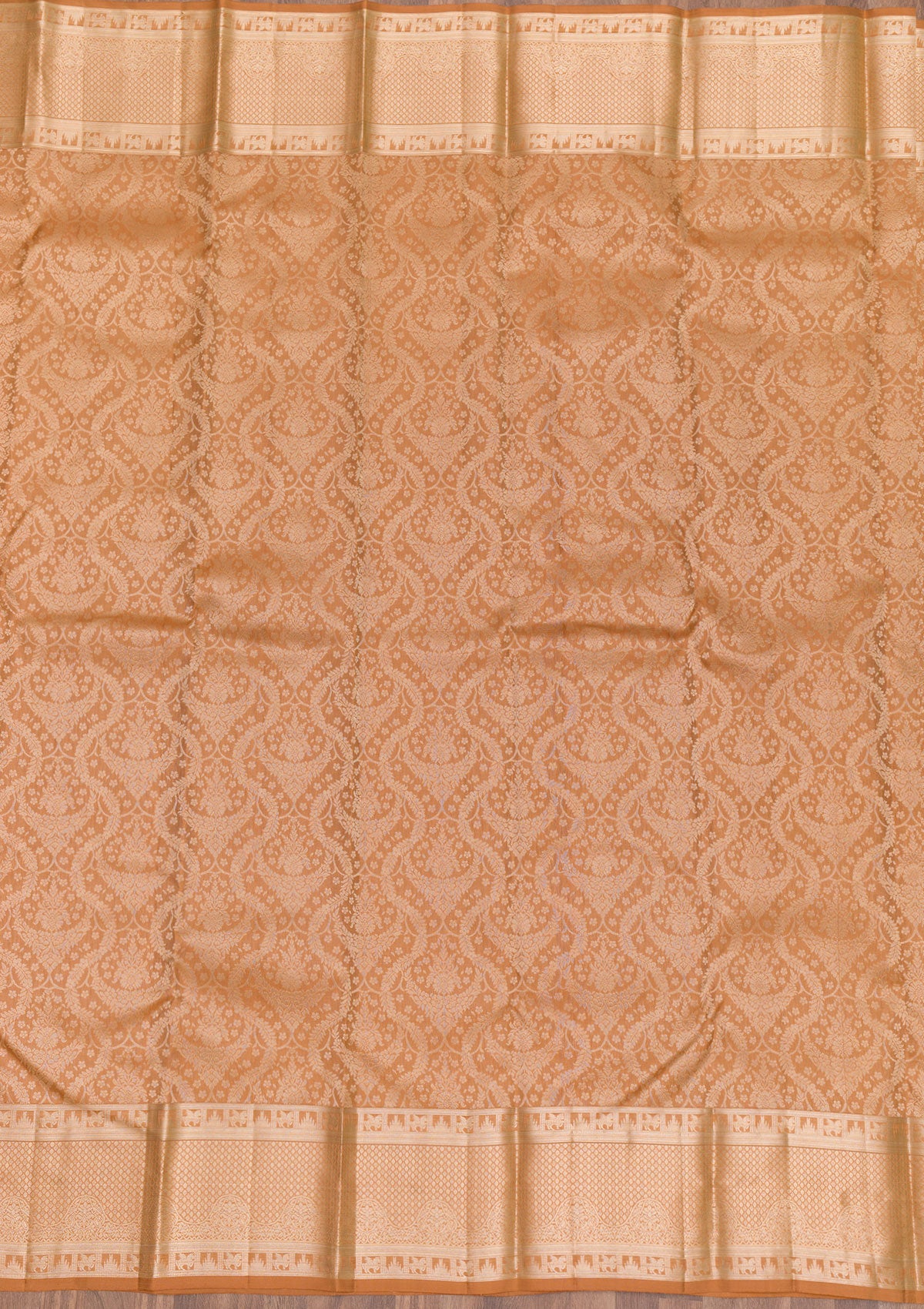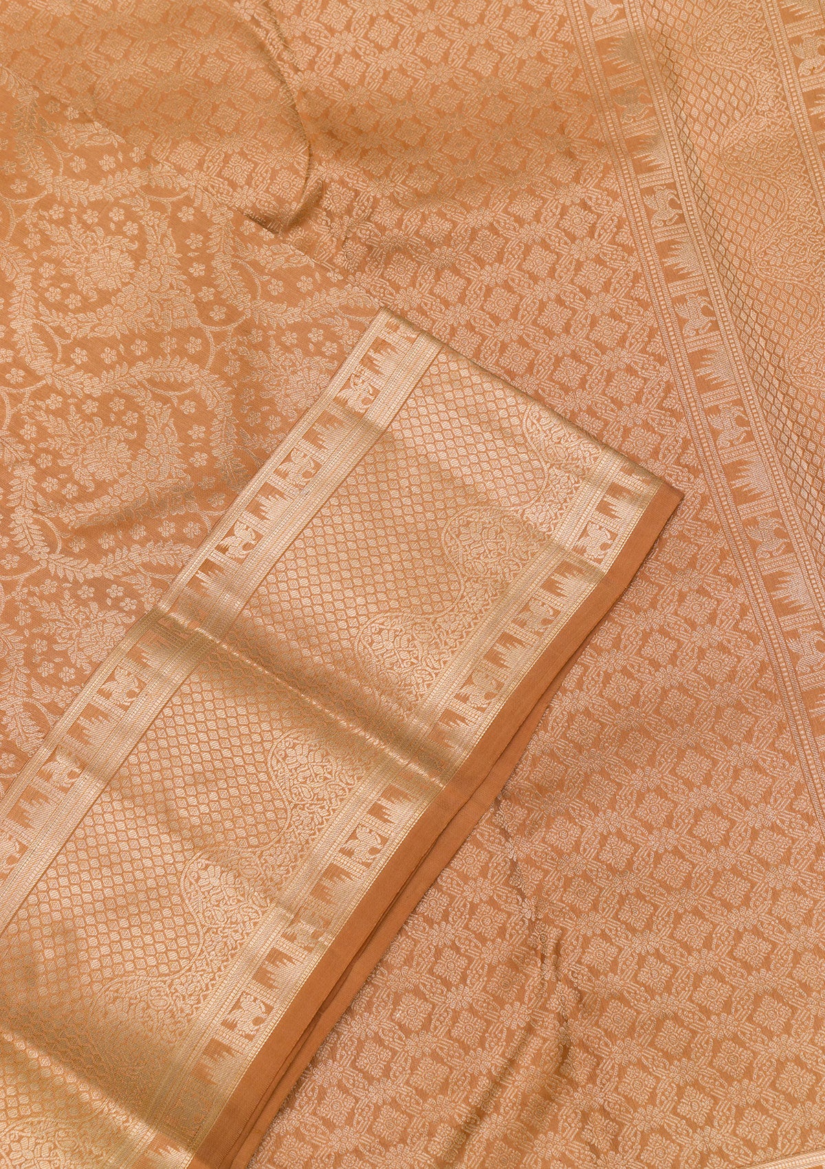 Light Brown Silk Saree in Pure Silk fabric The Silk Saree is elevated with Zariwork embroidery It comes with an Unstitched blouse Comes with the Koskii promise of premium quality.