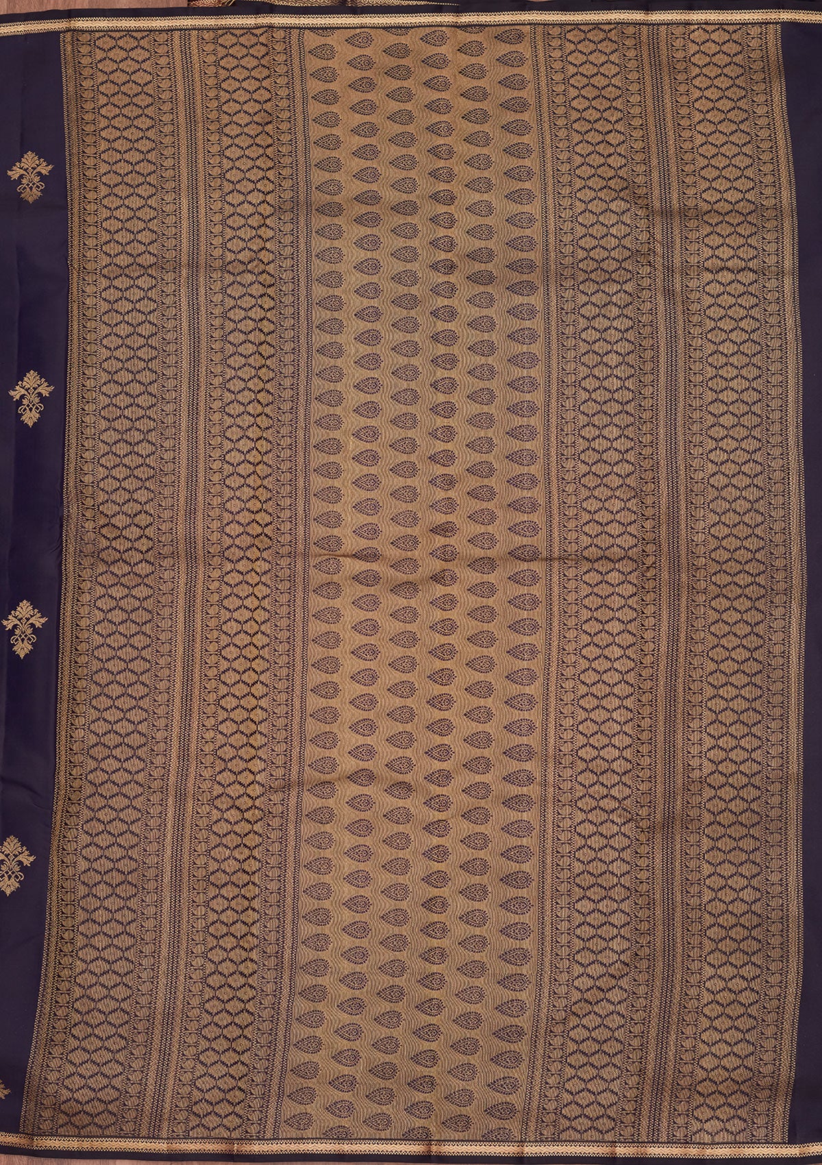 Navy Blue Silk Saree in Pure Silk fabric. The Silk Saree is elevated with Zariwork embroidery. It comes with an Unstitched blouse. Comes with the Koskii promise of premium quality.