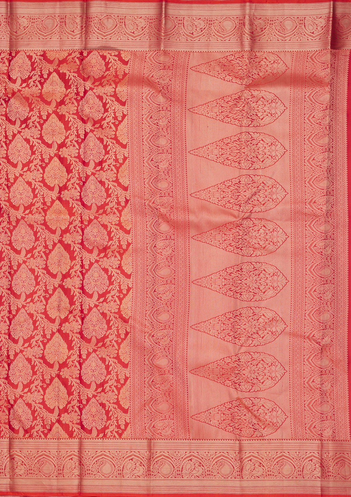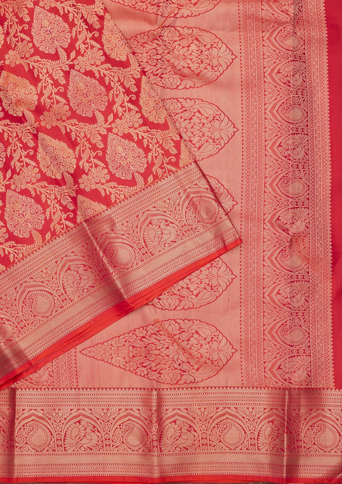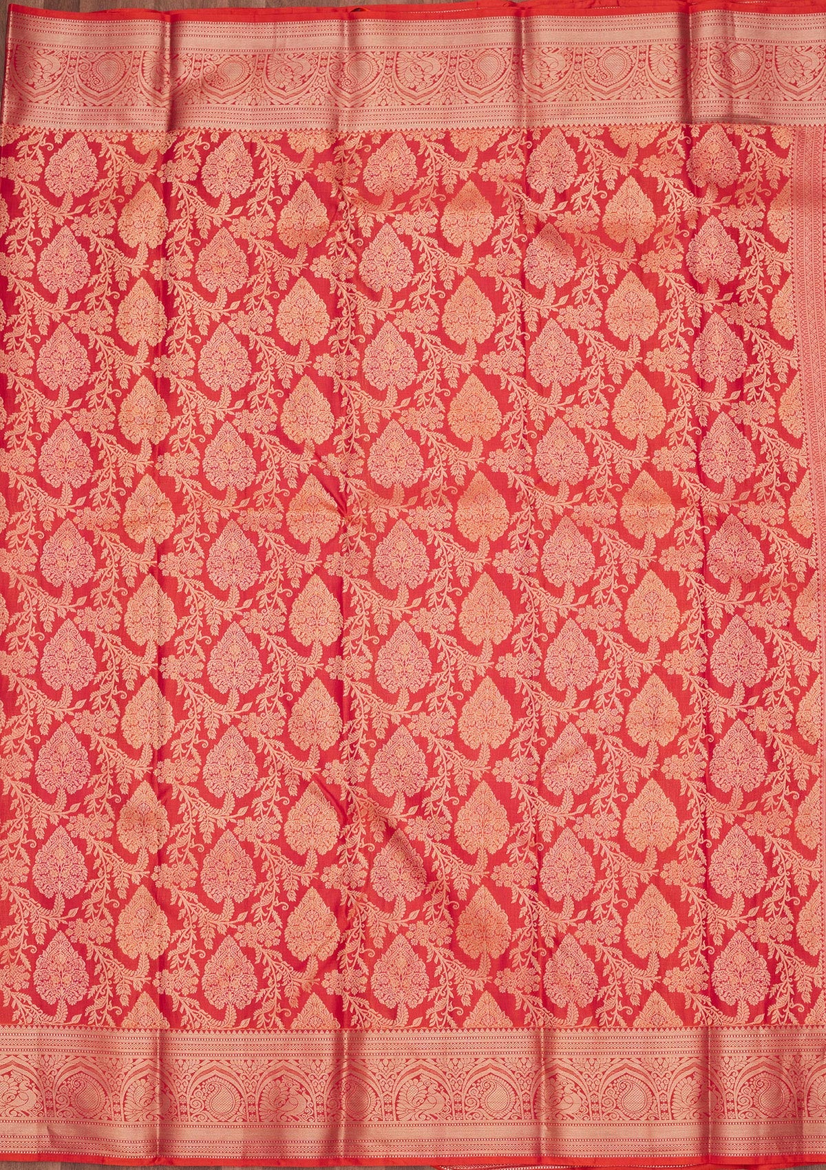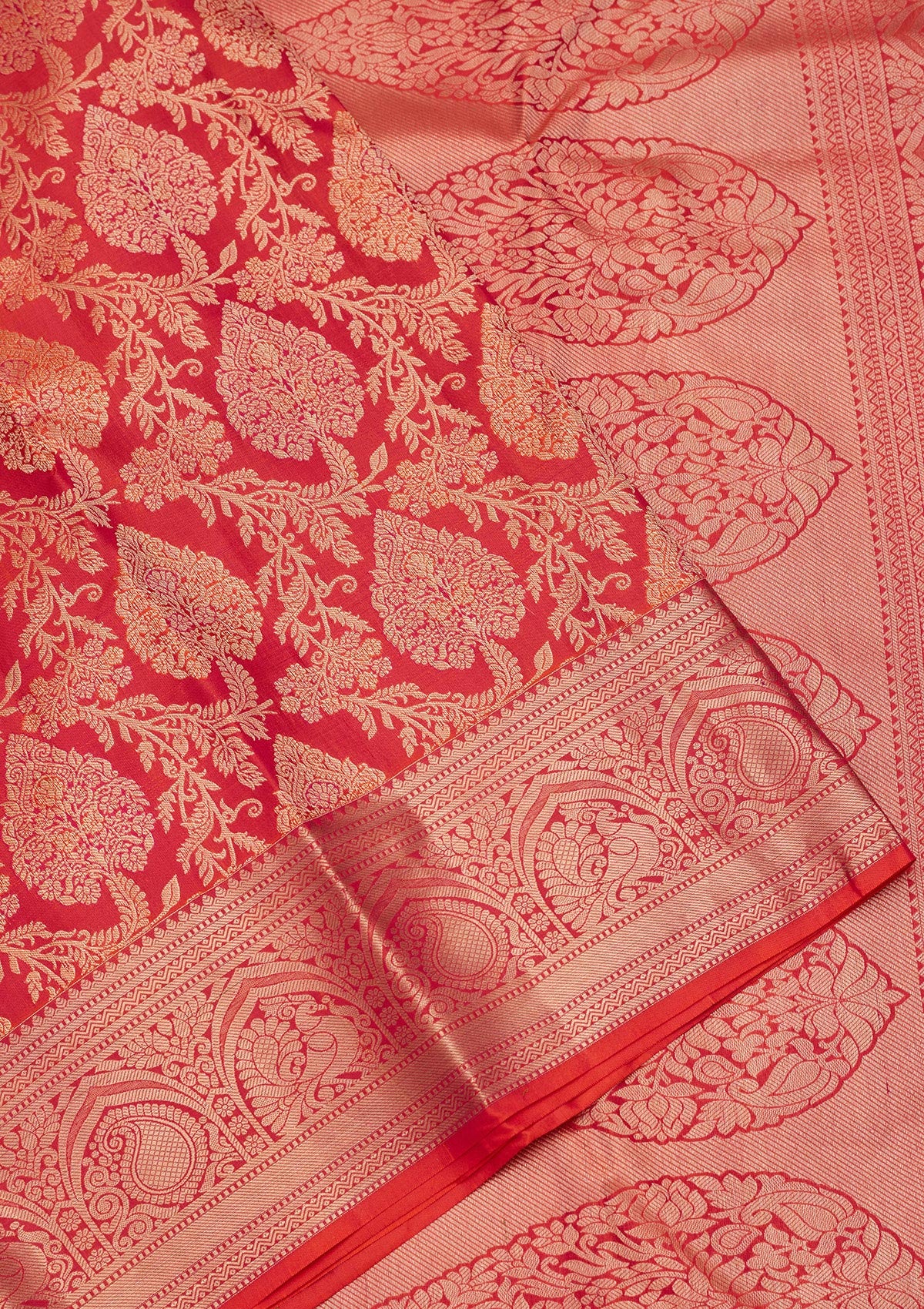 Orange Silk Saree in Pure Silk fabric The Silk Saree is elevated with Zariwork embroidery It comes with an Unstitched blouse Comes with the Koskii promise of premium quality.