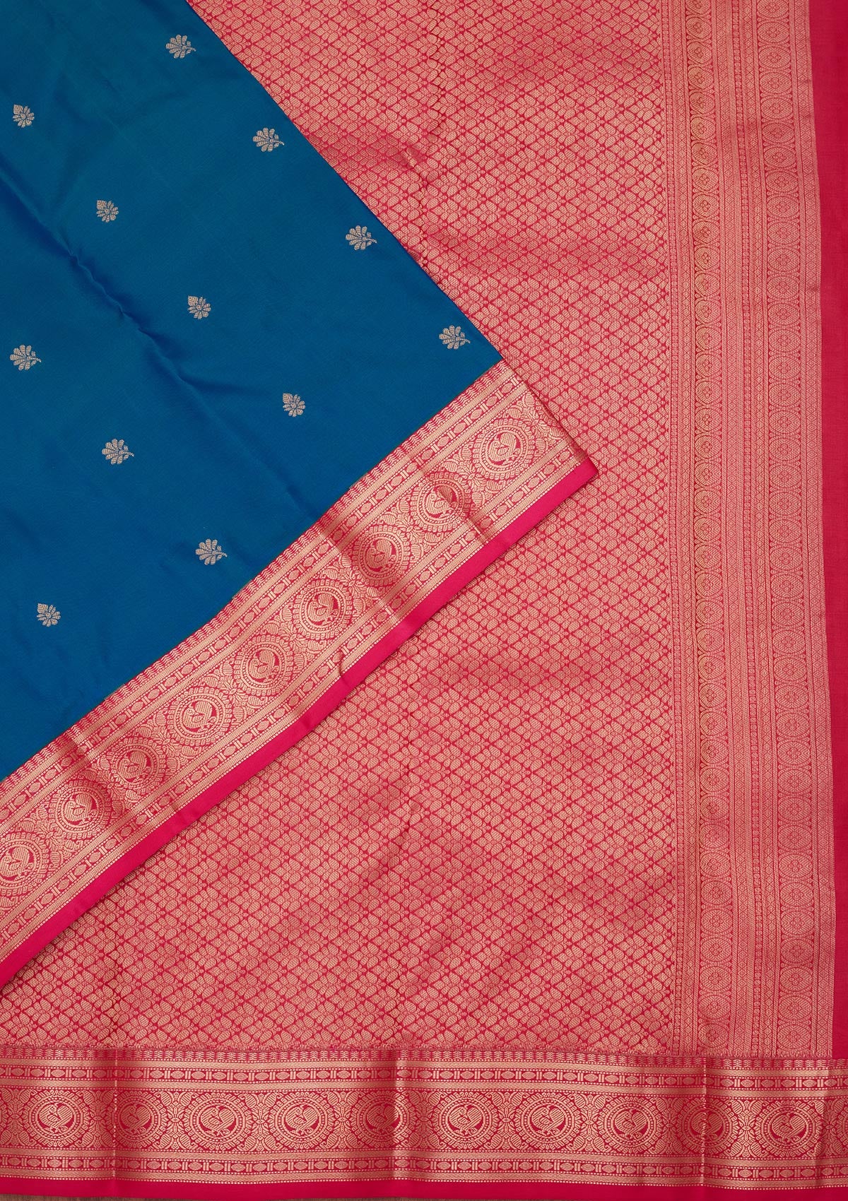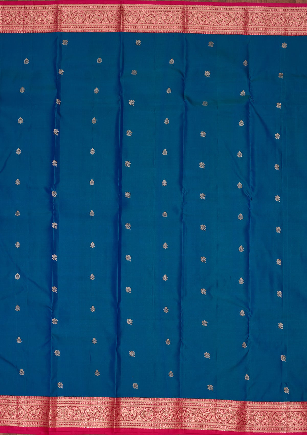 Peacock Blue Silk Saree in Pure Silk fabric. The Silk Saree is elevated with Zariwork embroidery. It comes with an Unstitched blouse. Comes with the Koskii promise of premium quality.