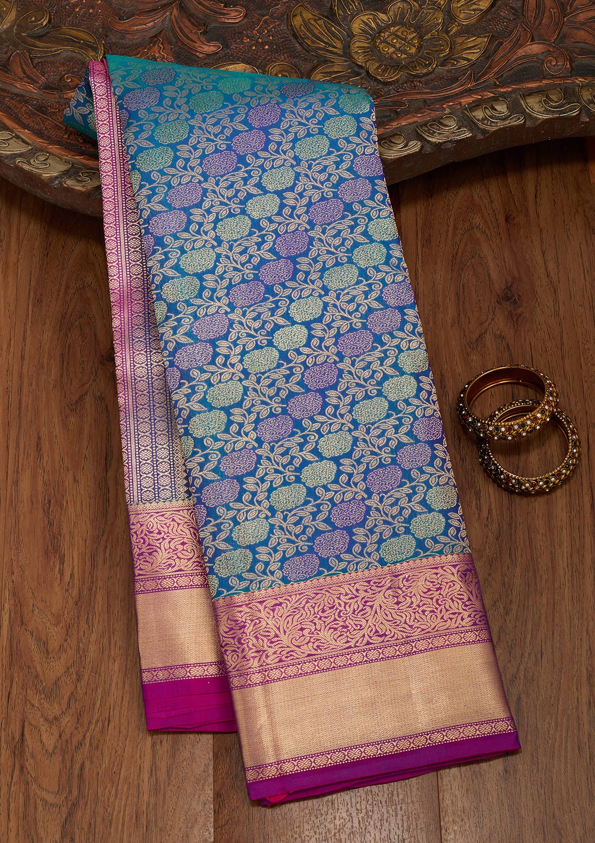 Peacock Blue Silk Saree in Pure Silk fabric. The Silk Saree is elevated with Zariwork embroidery. It comes with an Unstitched blouse. Comes with the Koskii promise of premium quality.