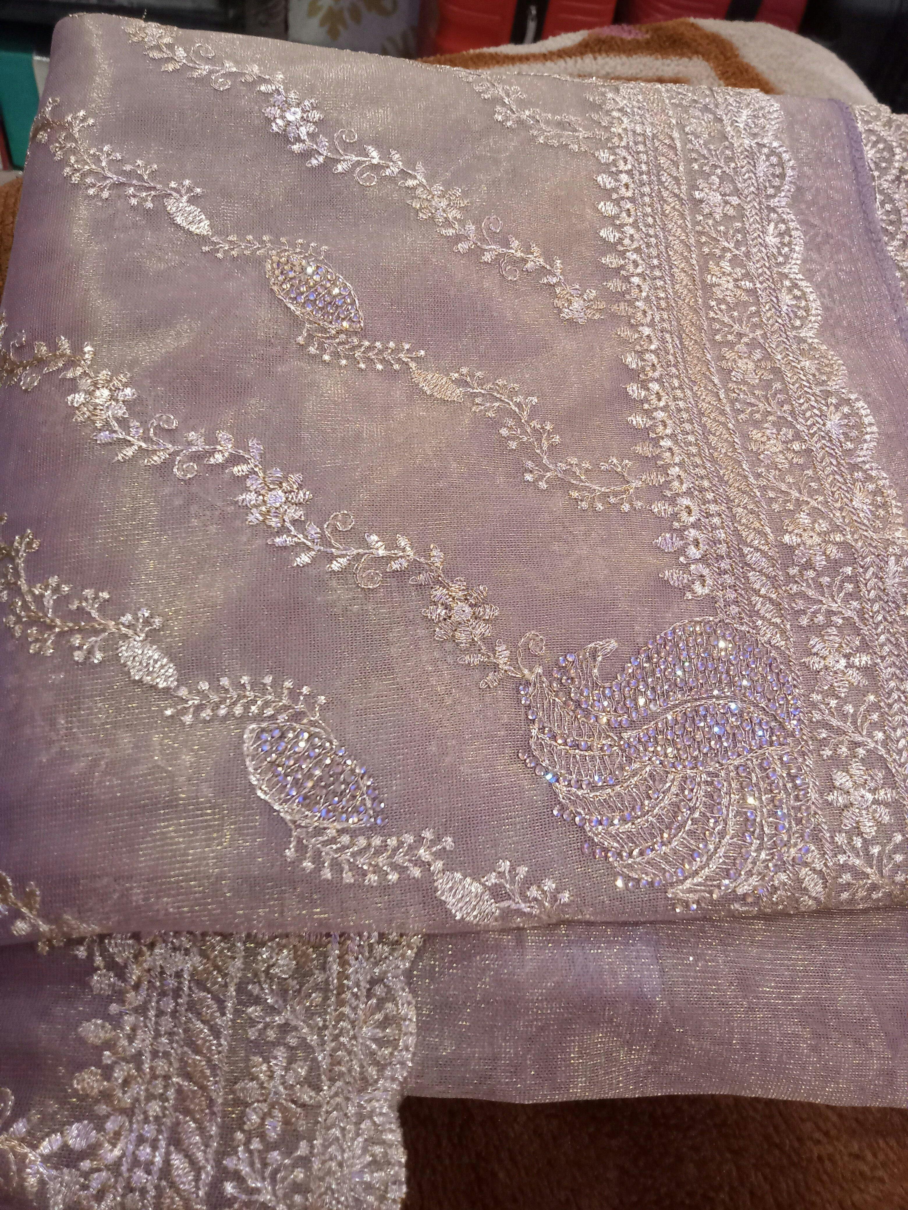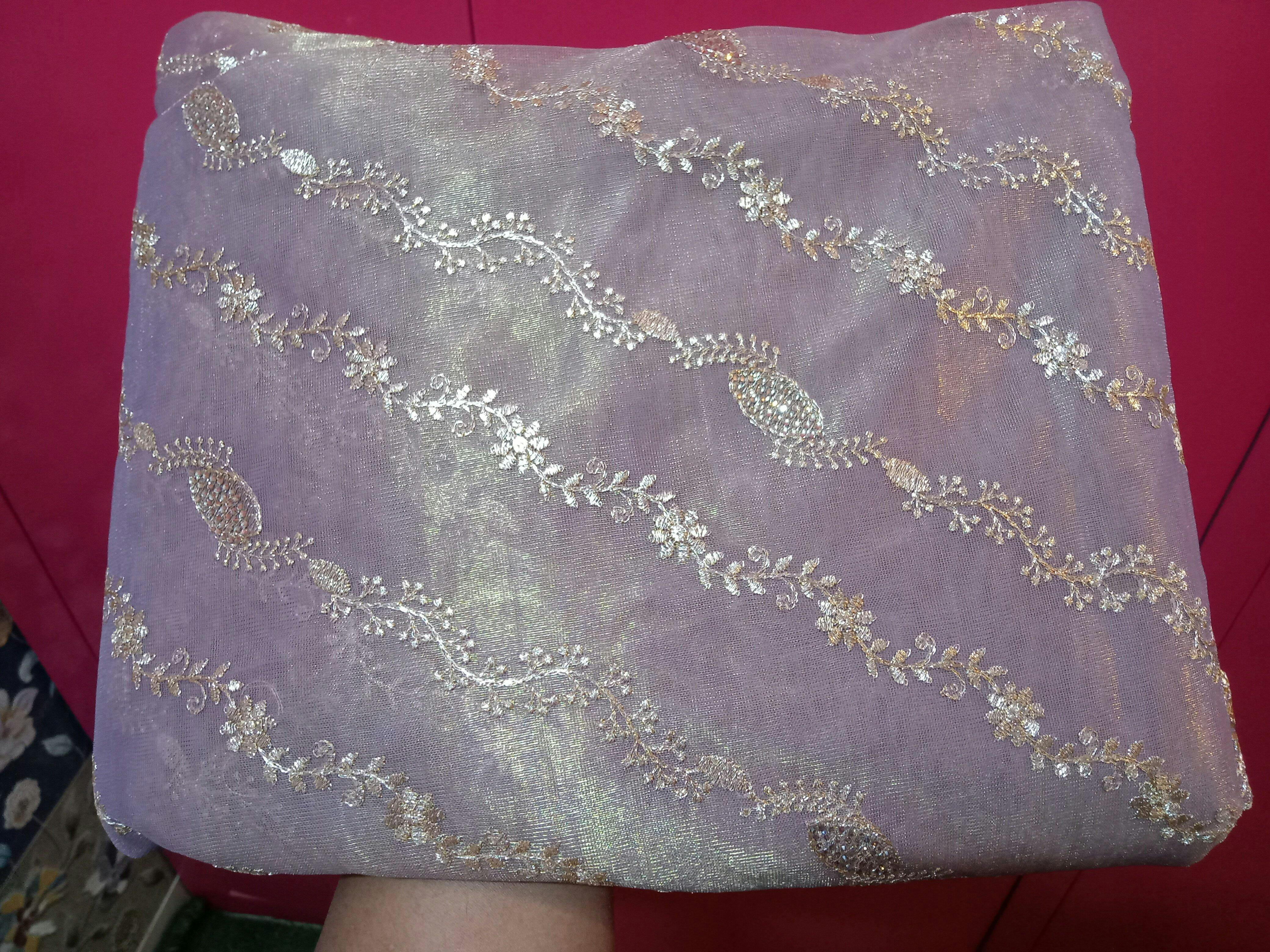 Step into the spotlight with the Koskii Mauve Tissue Saree, where elegance meets celebratory flair! This stunning saree features luxurious gold Zariwork embroidery, casting a radiant glow that’s perfect for evening events. Crafted in breezy tissue fabric, this piece promises not only a grand entrance but a comfortable celebration, too. Let your spirit shine in this breathtaking creation by Koskii—a true testament to impeccable style and traditional craftsmanship.