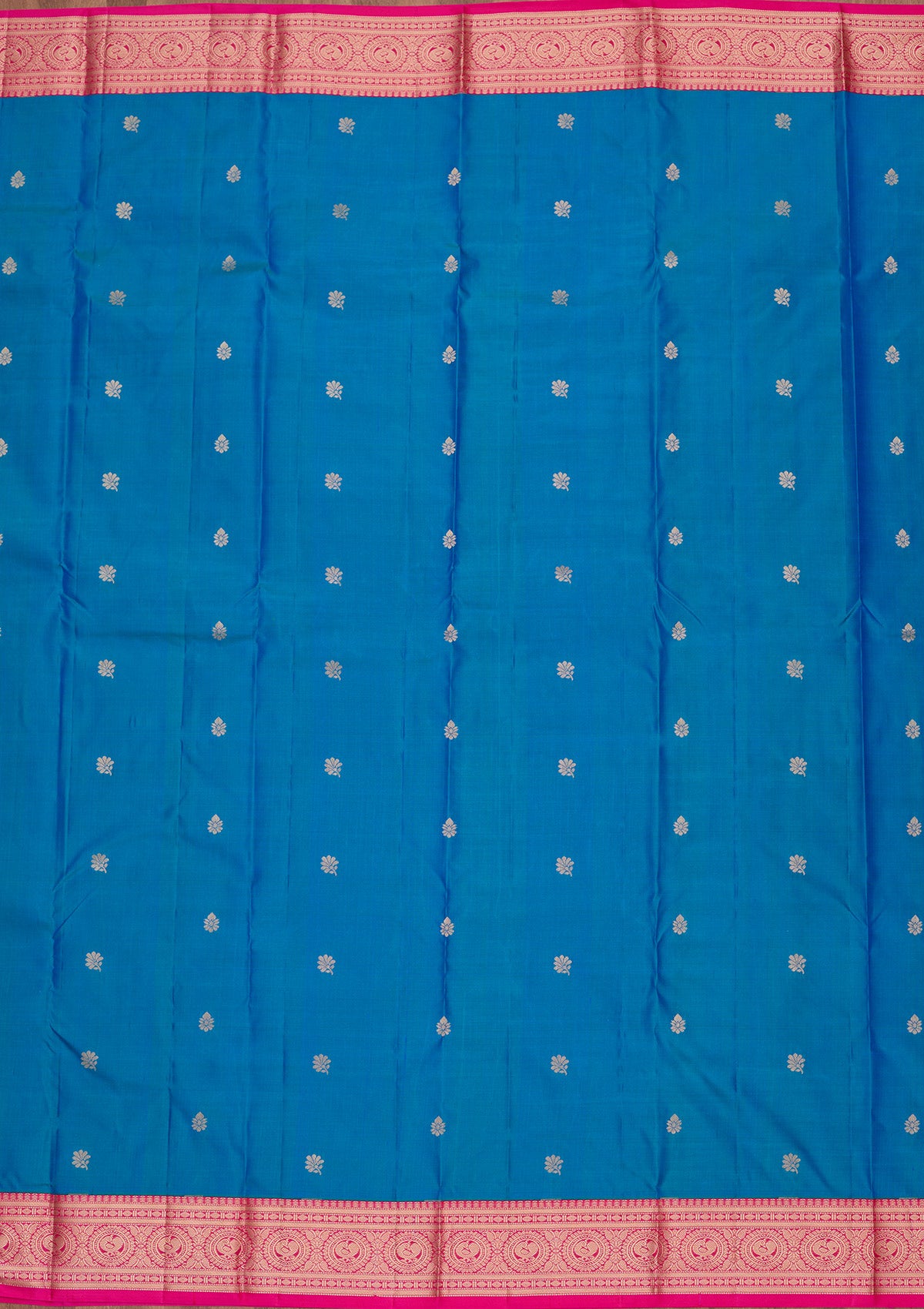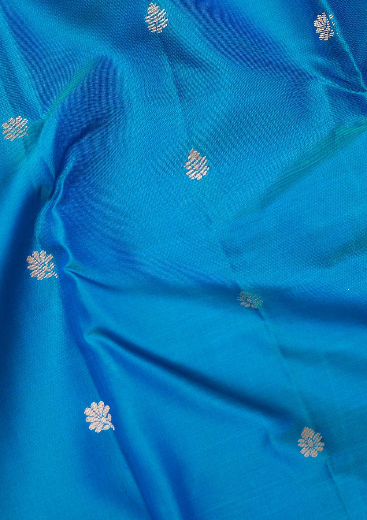 Turquoise Blue Silk Saree in Pure Silk fabric The Silk Saree is elevated with Zariwork embroidery It comes with an Unstitched blouse Comes with the Koskii promise of premium quality.