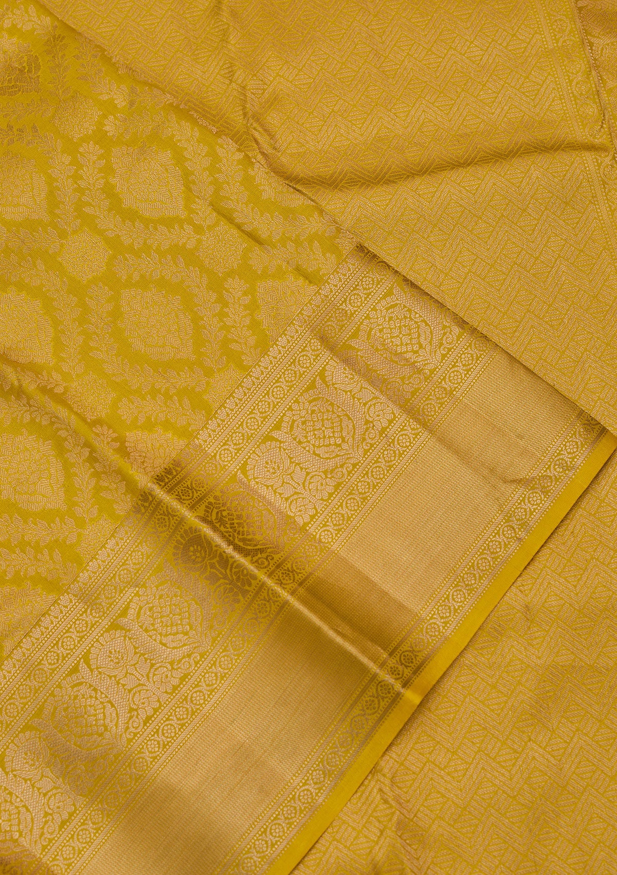 Yellow Silk Saree in Pure Silk fabric The Silk Saree is elevated with Zariwork embroidery It comes with an Unstitched blouse Comes with the Koskii promise of premium quality.