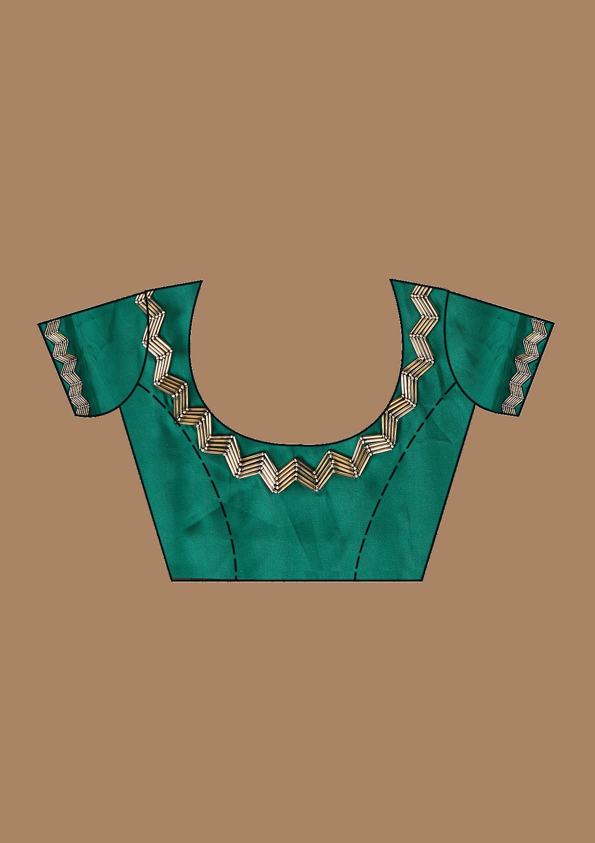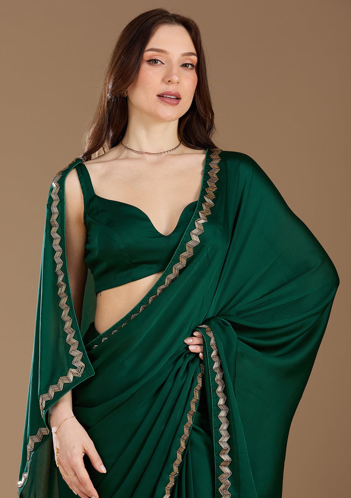Bottle Green Saree in Satin fabric. The Saree is elevated with Aariwork embroidery. It comes with an Unstitched blouse. Comes with the Koskii promise of premium quality.