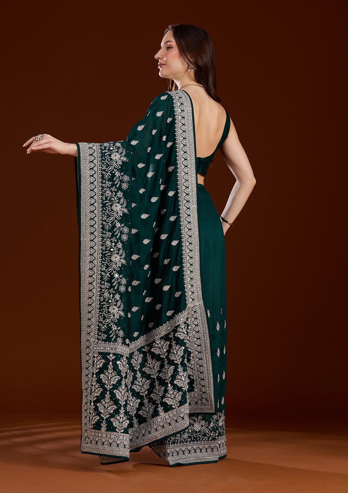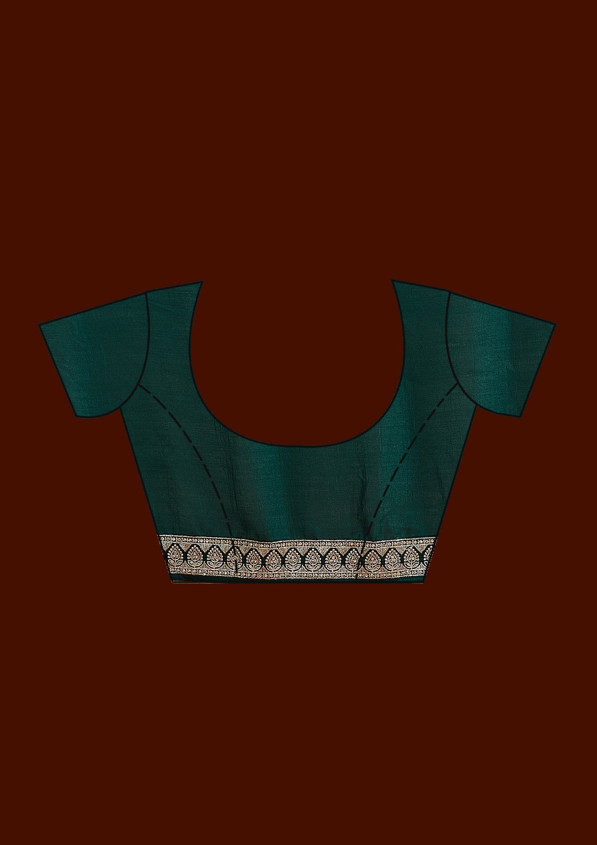Bottle Green Zariwork (Silver) Soft Raw Silk Saree