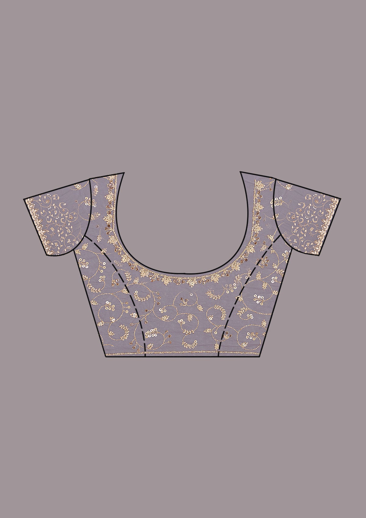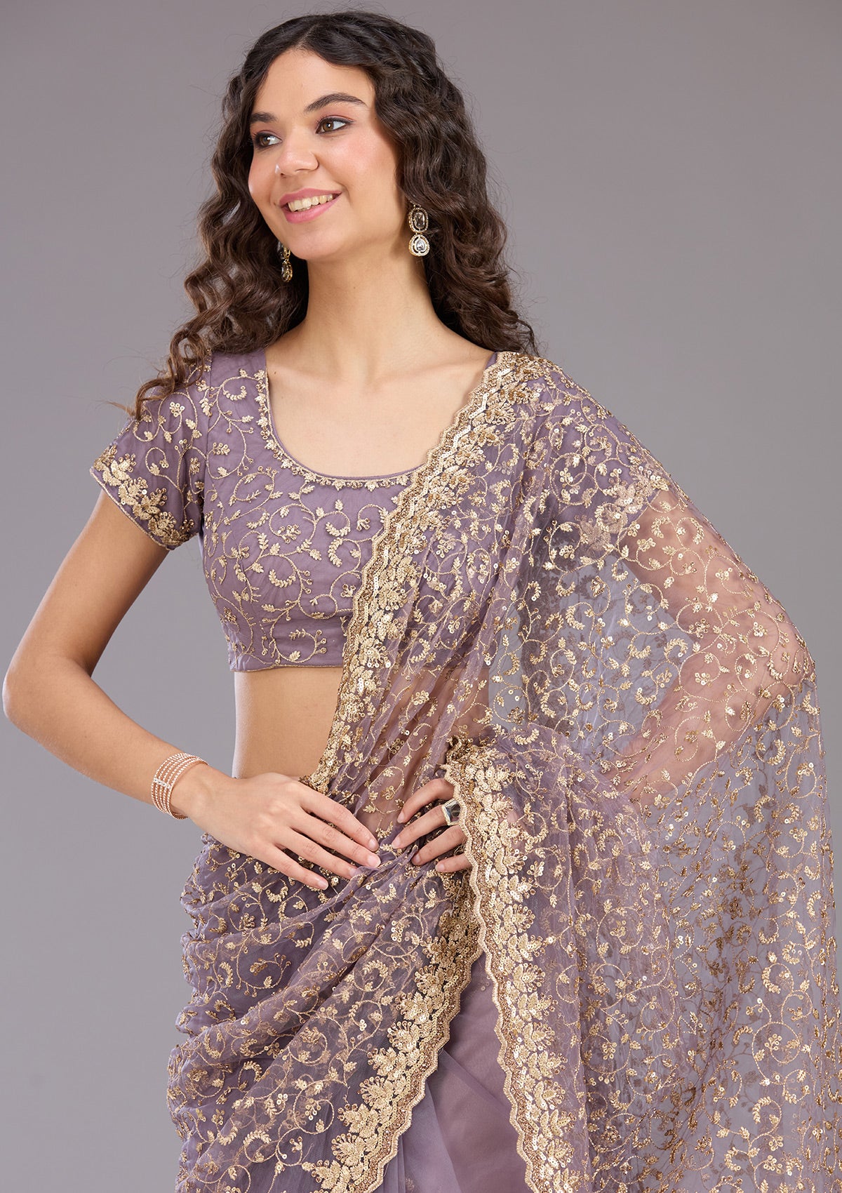 Lavender Saree in Net fabric. The Saree is elevated with Sequins embroidery. It comes with an Unstitched blouse. Comes with the Koskii promise of premium quality.