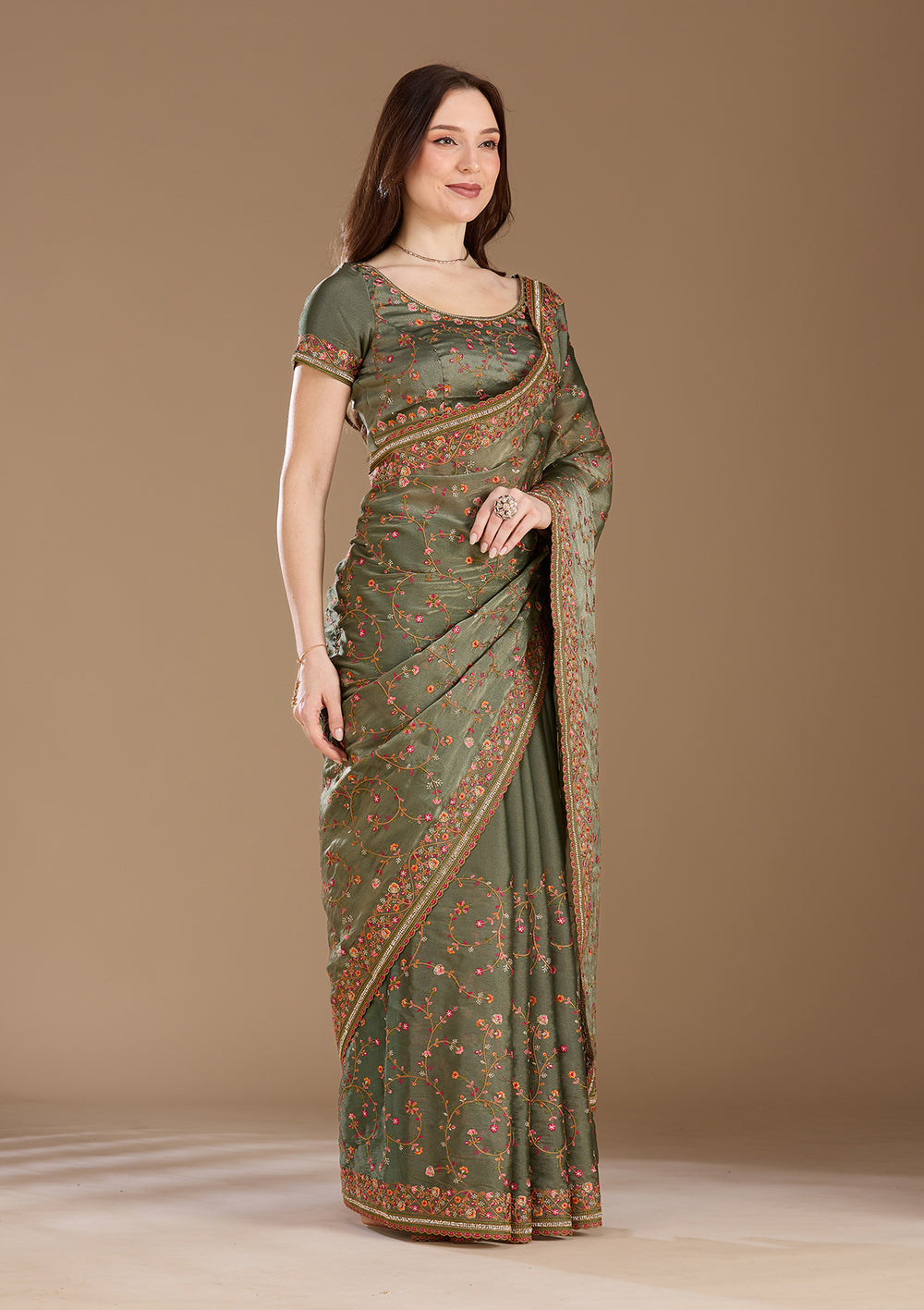 | Mehendi Zariwork Tissue Saree | ₹ 2,093 | |