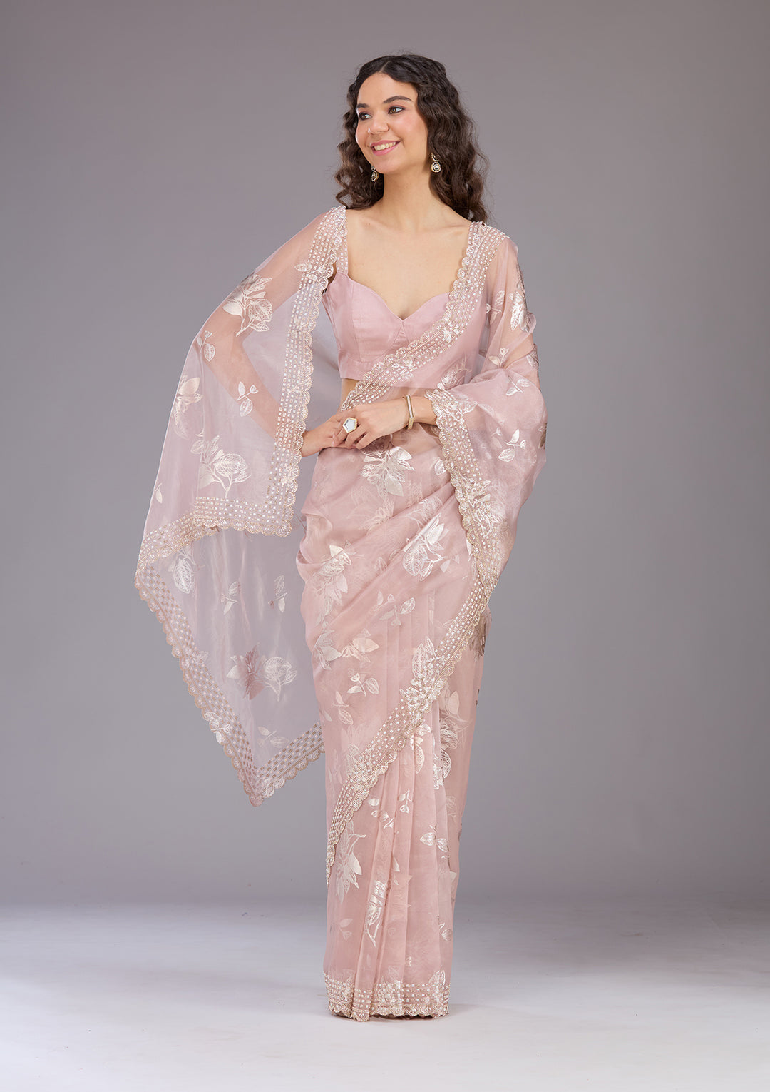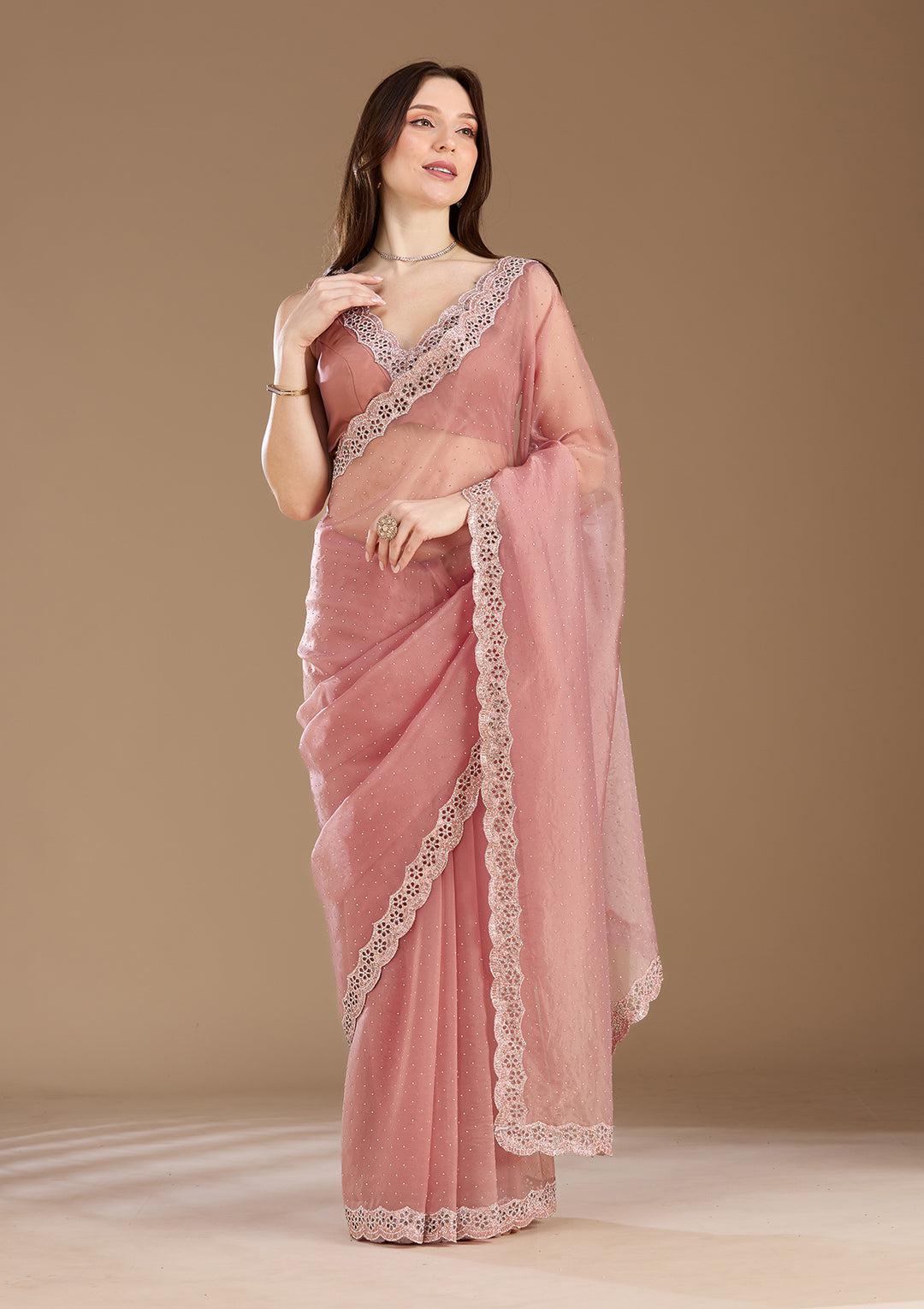 | Onion Pink Stonework (Gold) Organza Saree | ₹ 4,543 | |