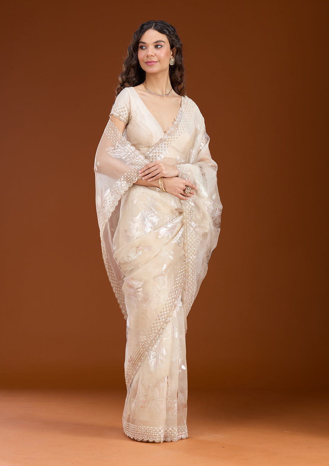 | Beige Stonework (Gold) Organza Saree | ₹ 4,543 | |