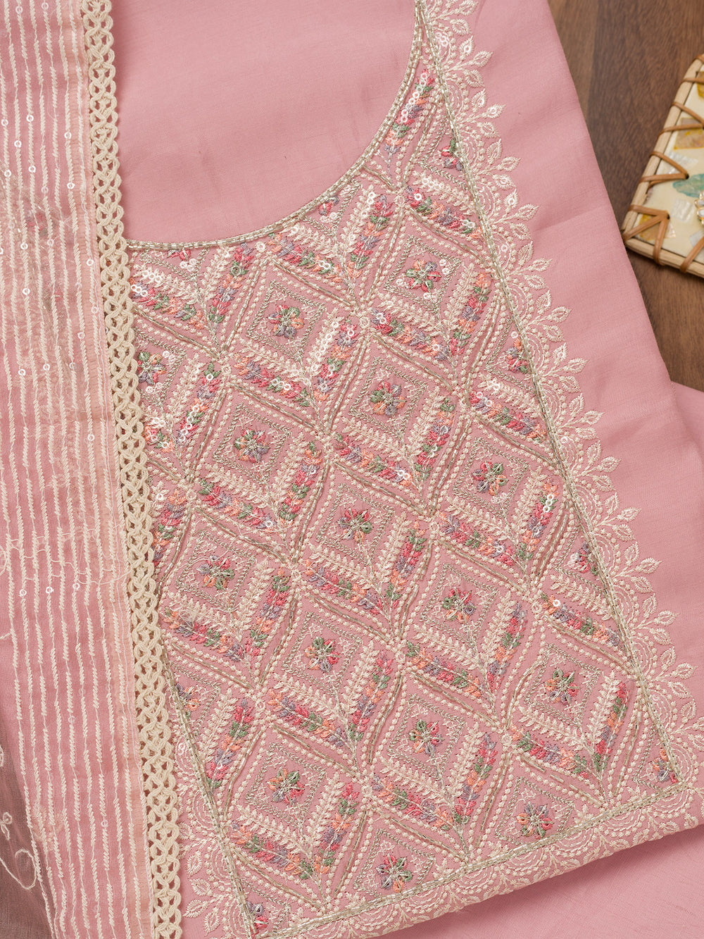 Baby Pink Threadwork Chanderi Unstitched Salwar Suit