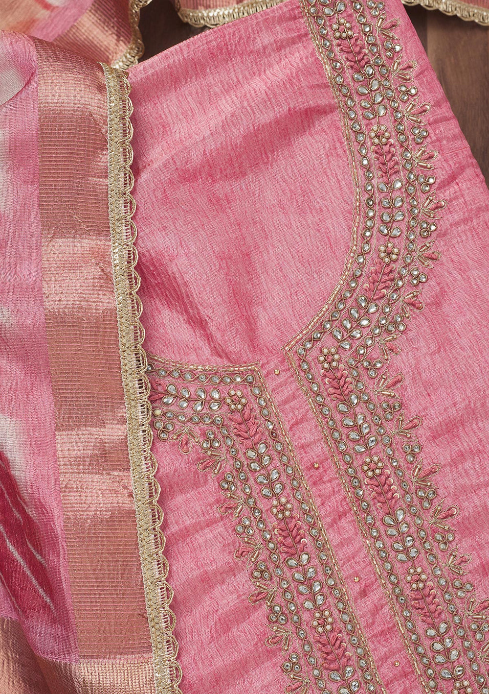 Baby Pink Zariwork Art Silk Unstitched Salwar Suit