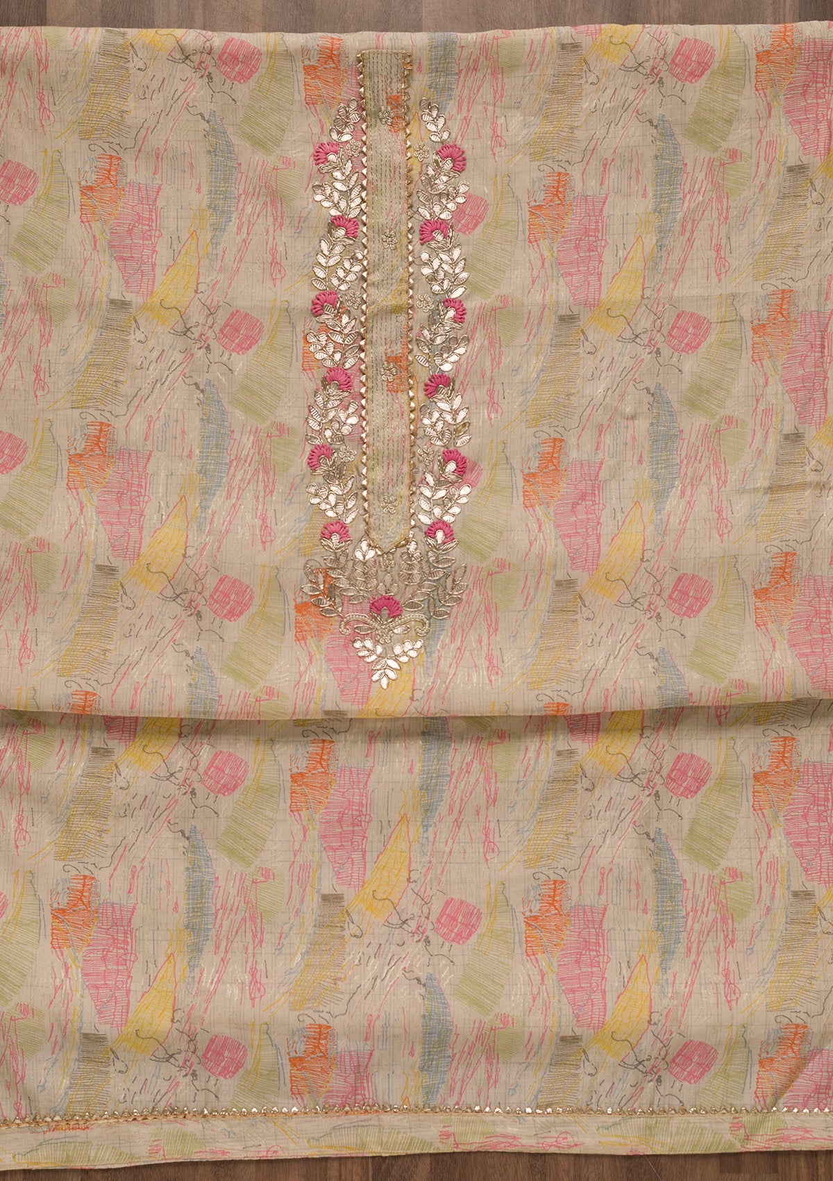 Beige Printed Georgette Unstitched Salwar Suit