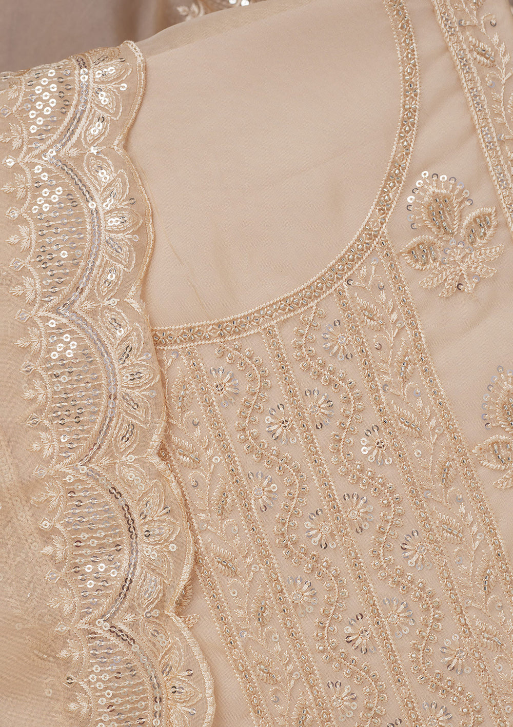 Beige Threadwork Semi Crepe Unstitched Salwar Suit