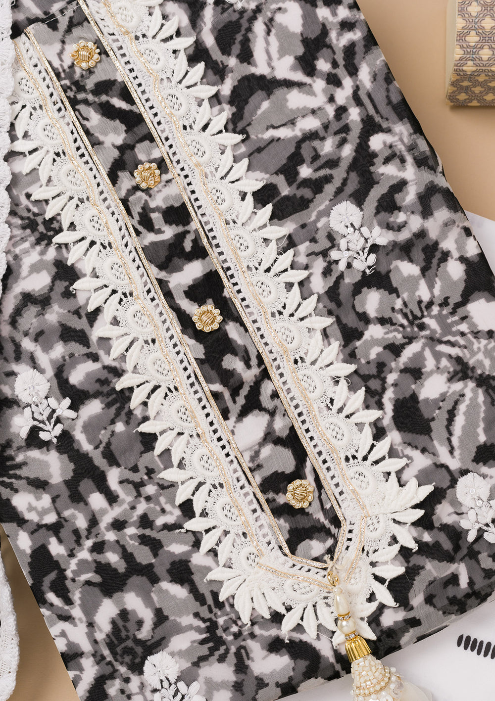 Black Salwar Suit in Georgette fabric. The Salwar Suit is embellished with Threadwork embroidery. Accompanied with a bottom and dupatta. Comes with the Koskii promise of premium quality.