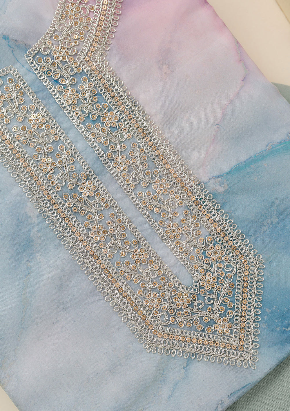 Blue Salwar Suit in Organza fabric. The Salwar Suit is embellished with Zariwork embroidery. Accompanied with a bottom and dupatta. Comes with the Koskii promise of premium quality.